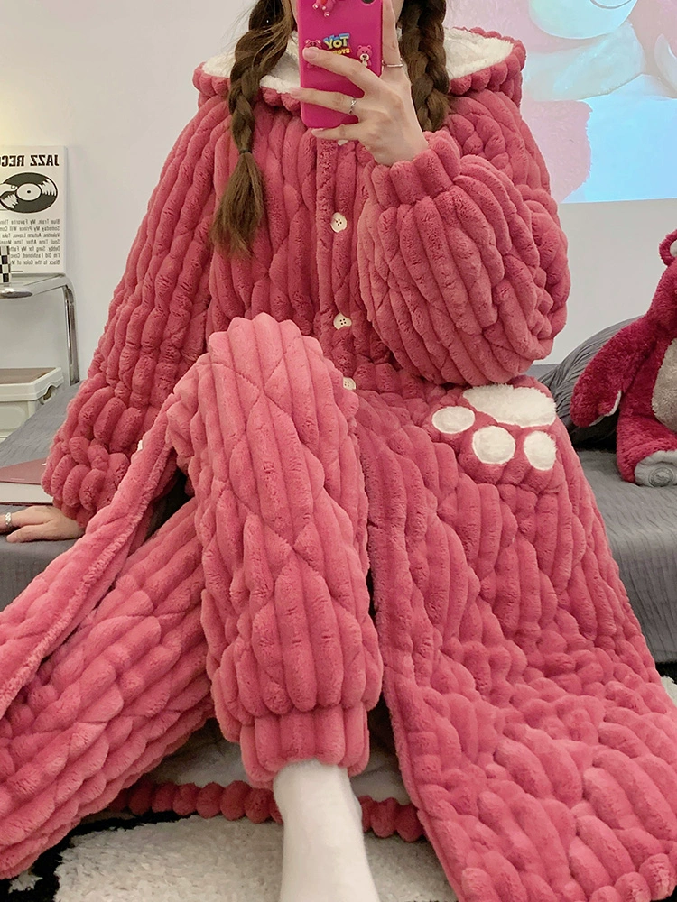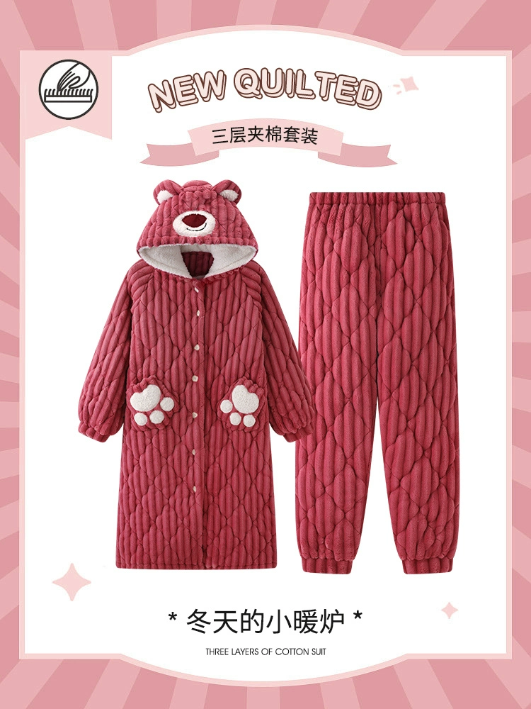 | nameOriginal | Coral velvet nightgown for women autumn and winter three-layer quilted thickened plus velvet warm flannel home clothes new style can be worn outside |