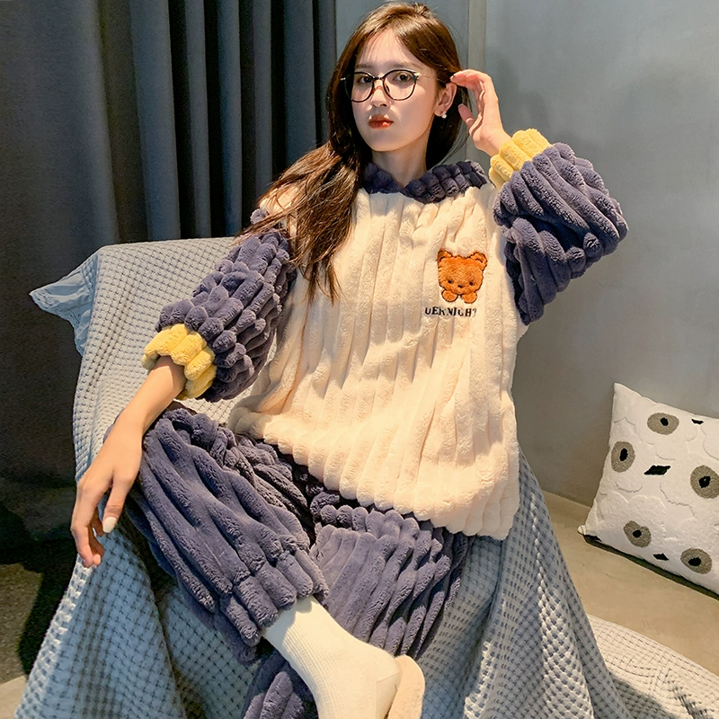 | nameOriginal | Coral velvet pajamas autumn and winter new style plus velvet thickening winter warm flannel girls cute home wear set |