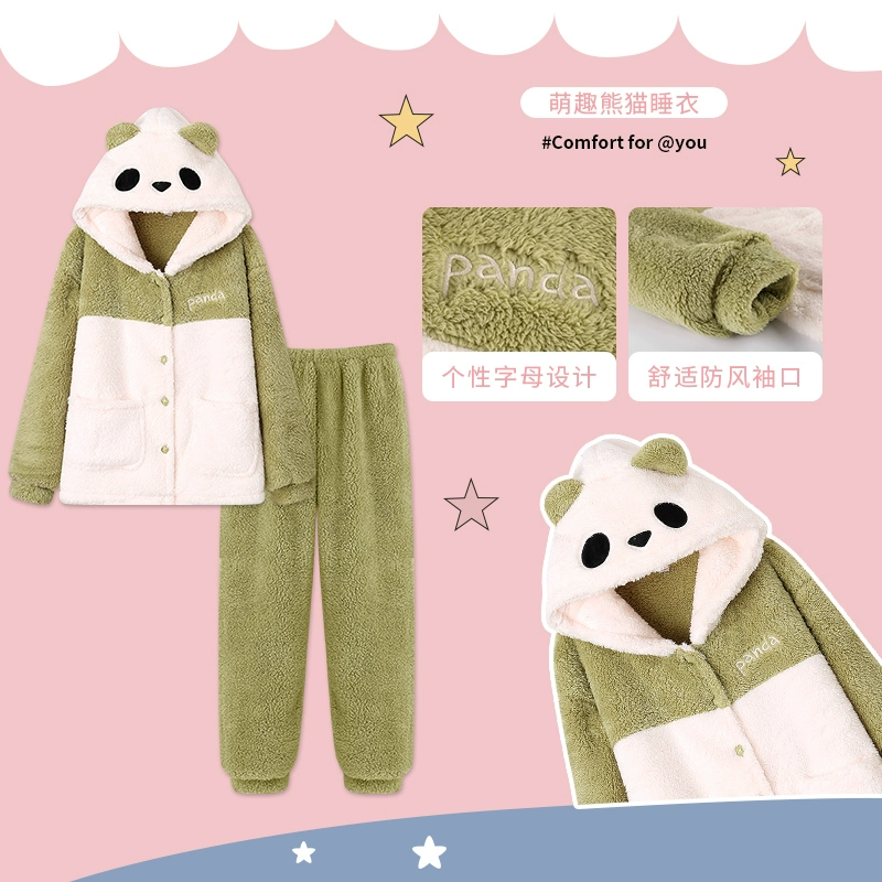 | nameOriginal | Coral velvet pajamas couple wear for one man and one woman in autumn and winter plus velvet and thickened cartoon panda winter warm home clothes |