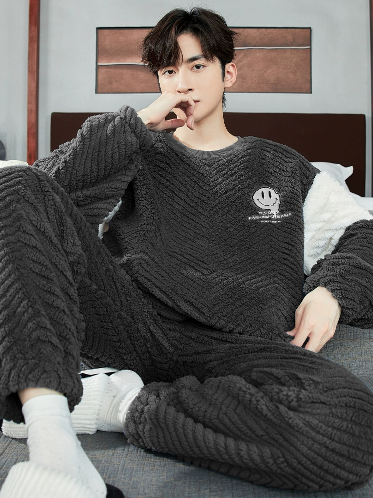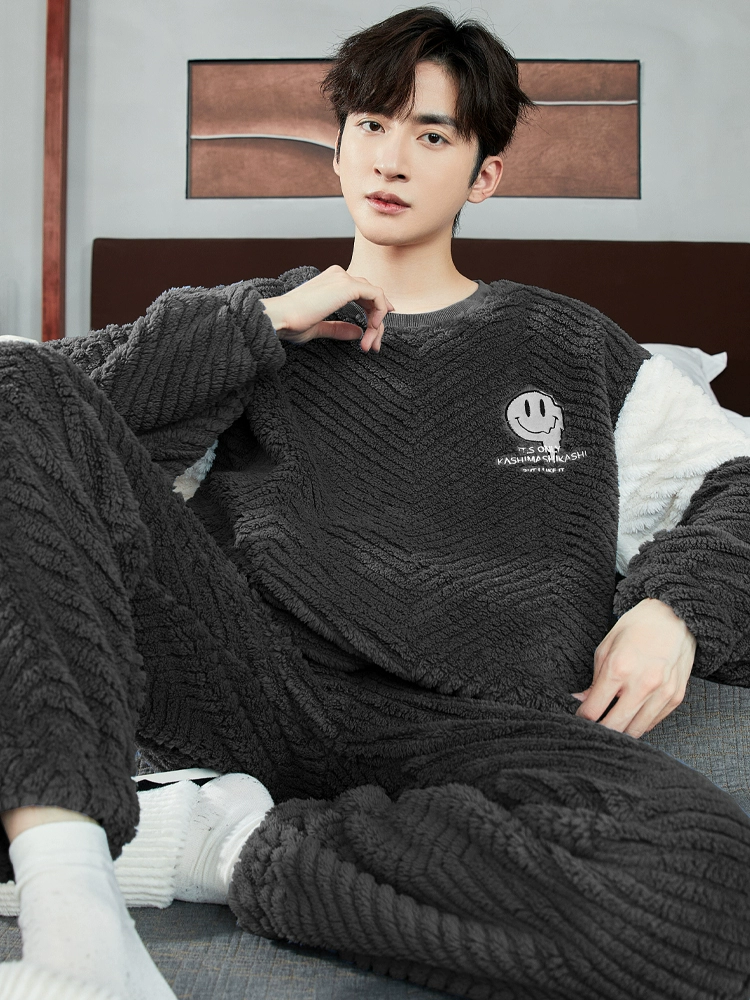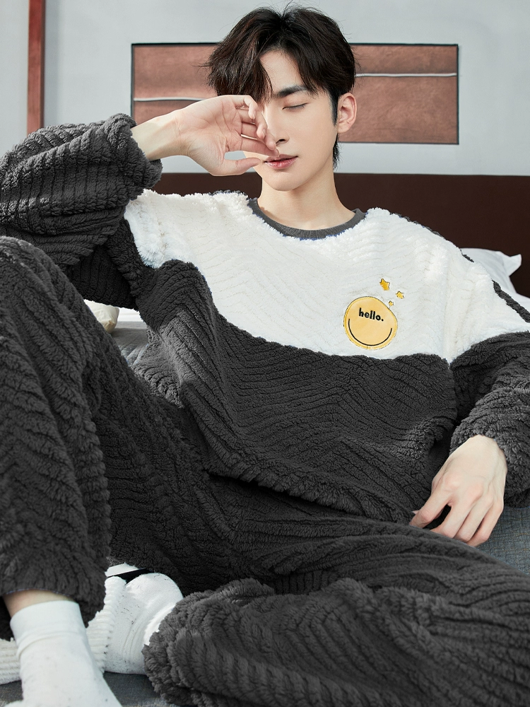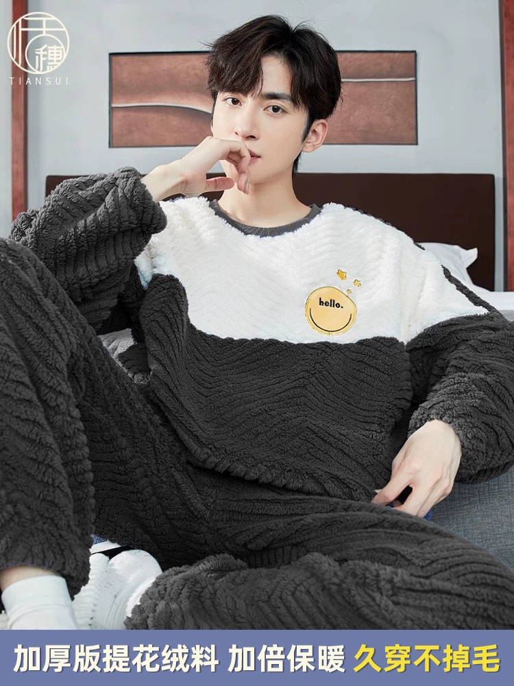 | nameOriginal | Coral velvet pajamas for men 2024 winter long-sleeved thickened velvet warm two-piece set casual flannel home clothes |