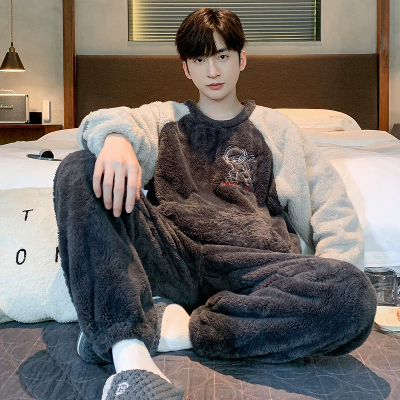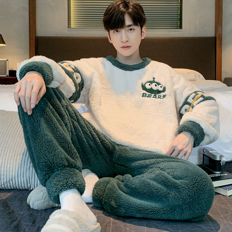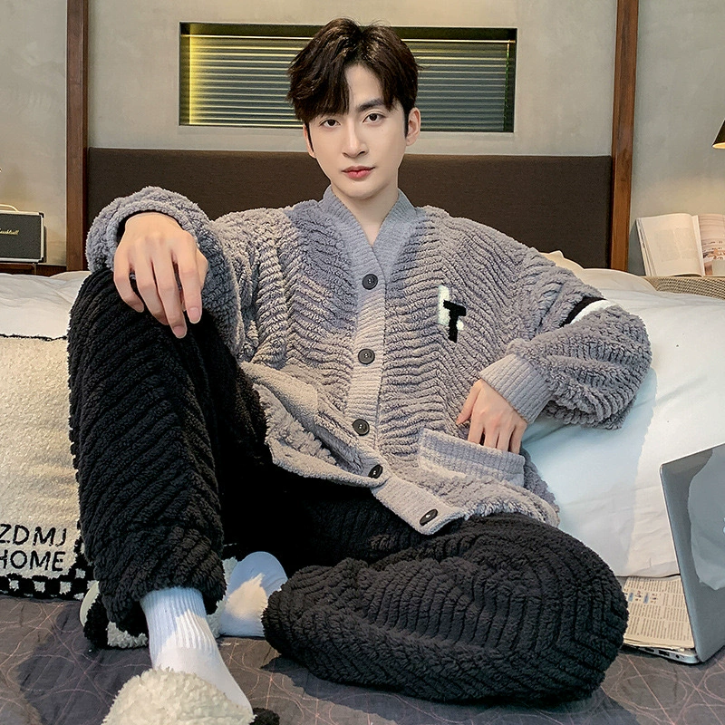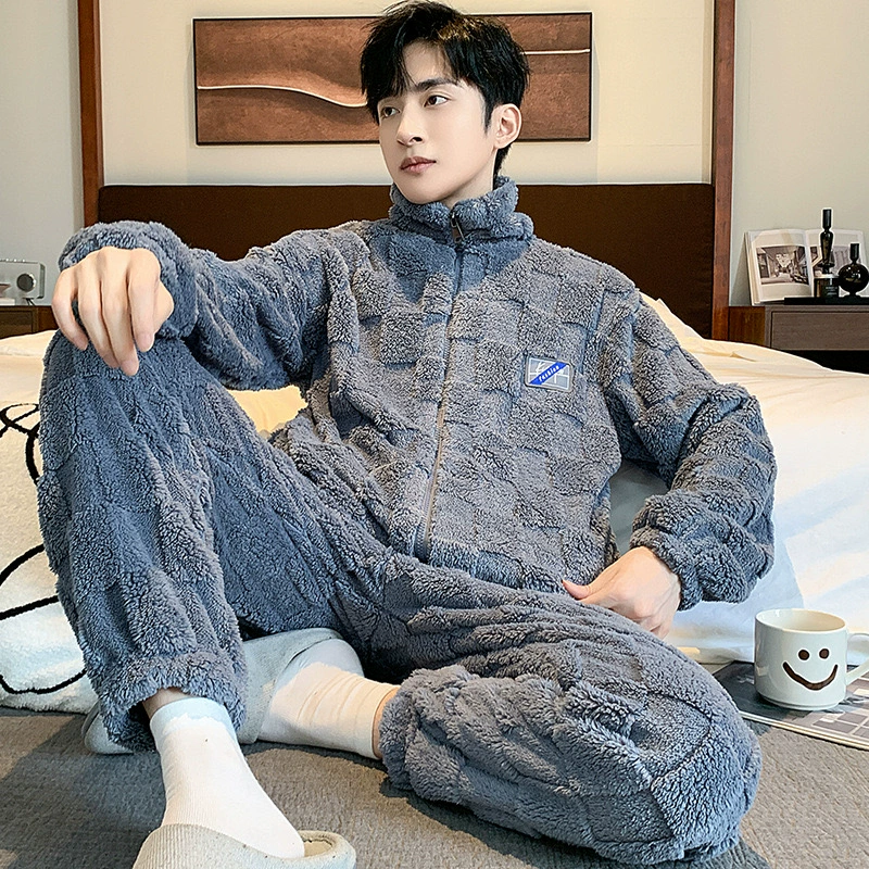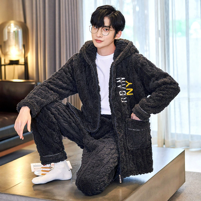 | nameOriginal | Coral velvet pajamas for men autumn and winter plus velvet thickening 2024 new Korean style zipper men's flannel home wear set |
