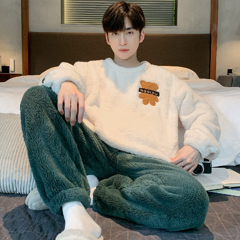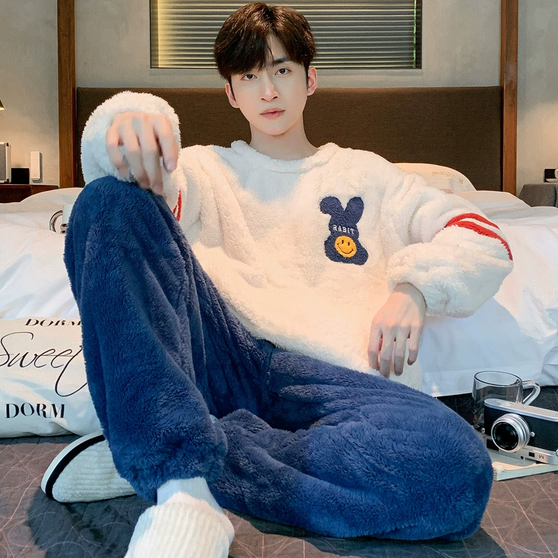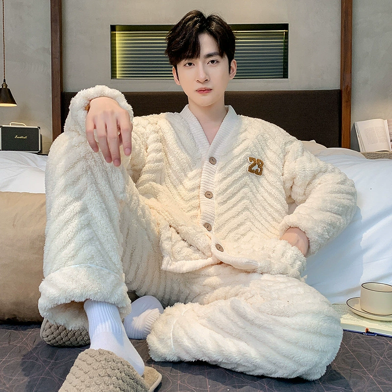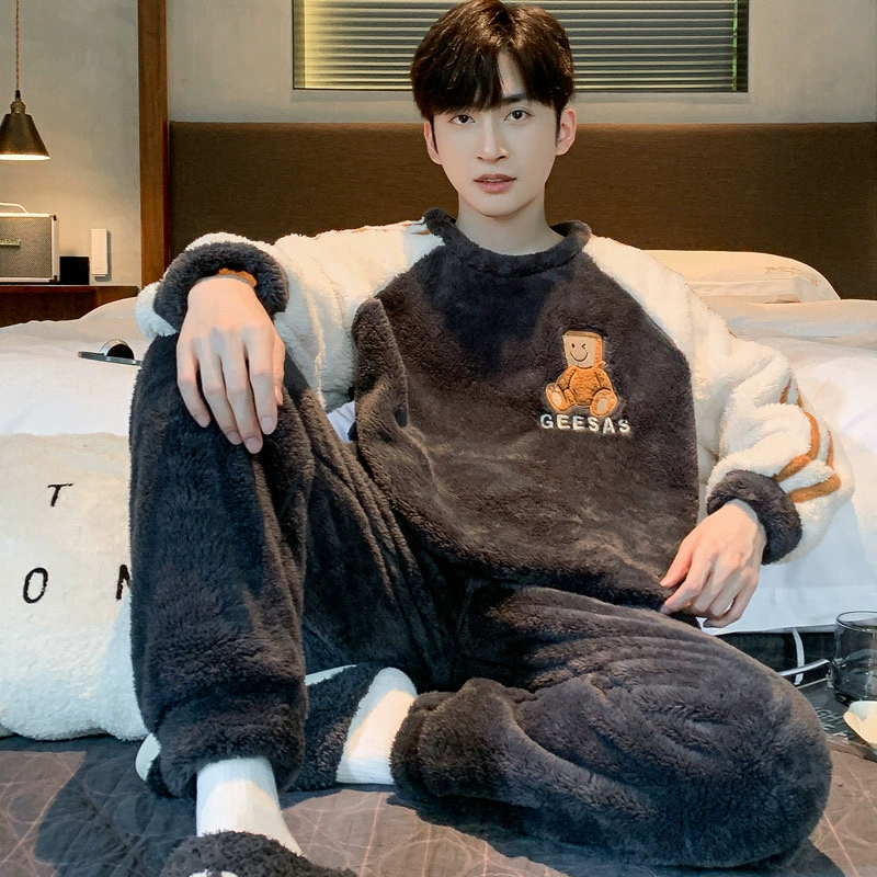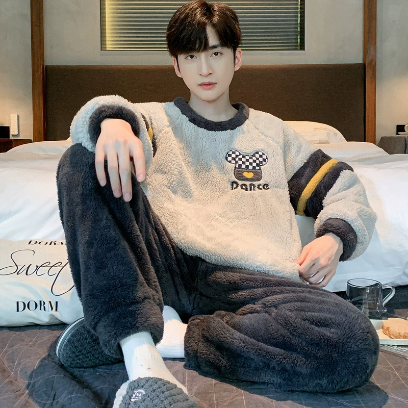 | nameOriginal | Coral velvet pajamas for men autumn and winter plus velvet thickening 2024 new Korean style zipper men's flannel home wear set |