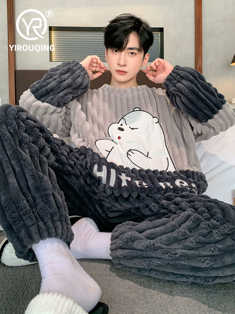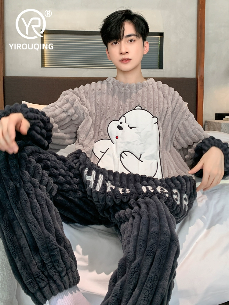 | nameOriginal | Coral velvet pajamas for men in autumn and winter plus velvet and thickening for students and teenagers winter cute cartoon home clothes set |