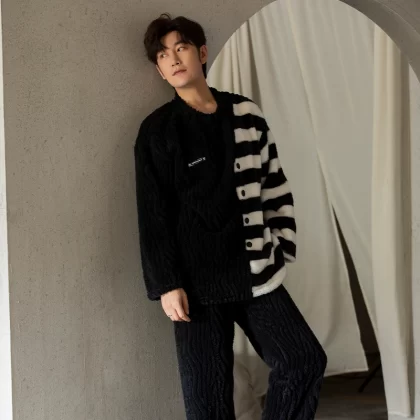 | nameOriginal | Coral velvet pajamas for men winter 2024 new wearable pullover striped print thickened velvet home clothes |