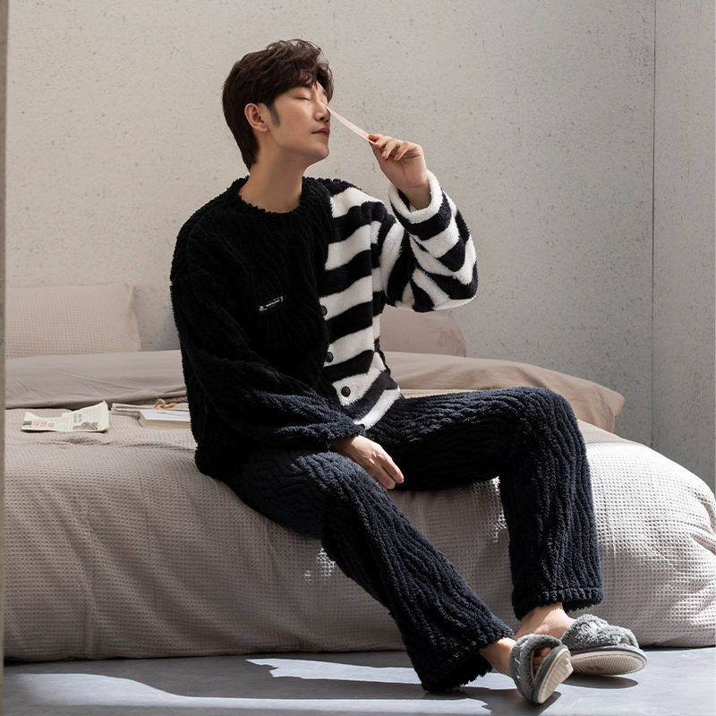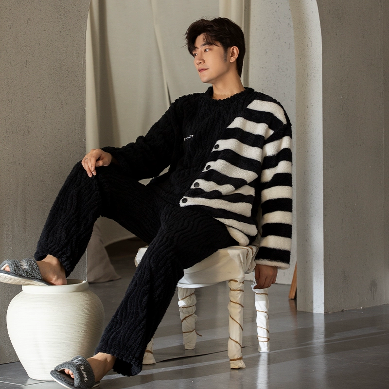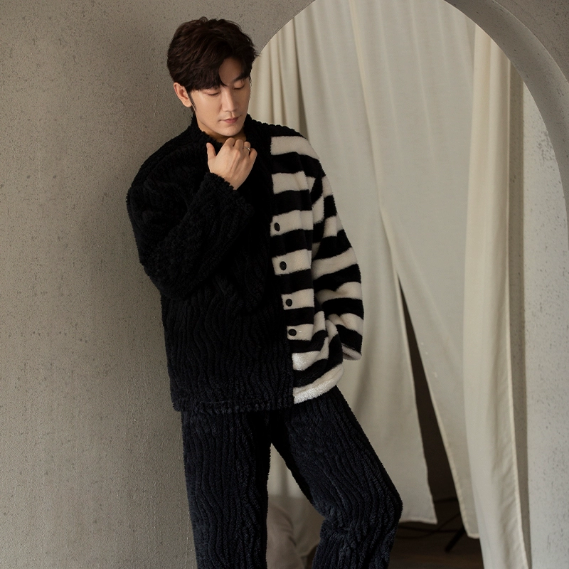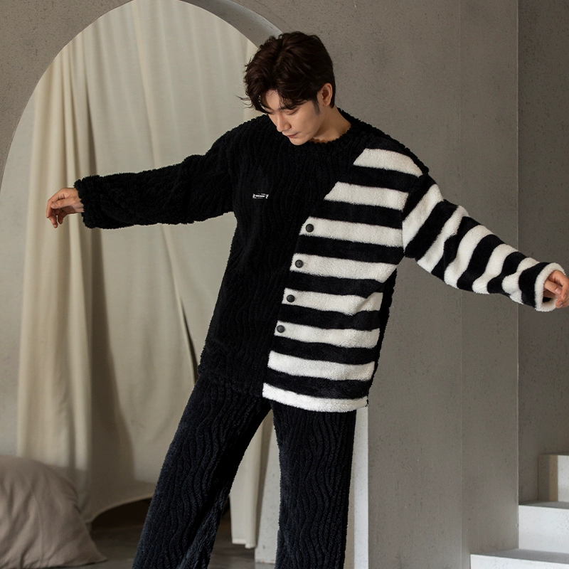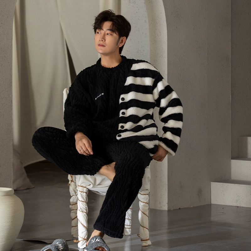 | nameOriginal | Coral velvet pajamas for men winter striped print 2024 new wearable embroidered thickened velvet home clothes |