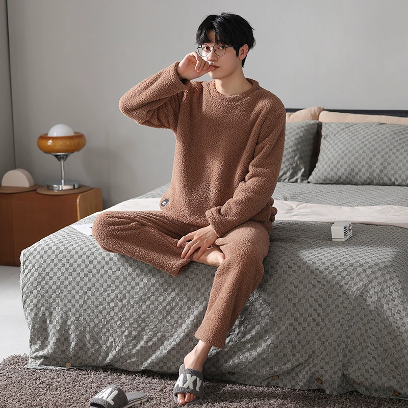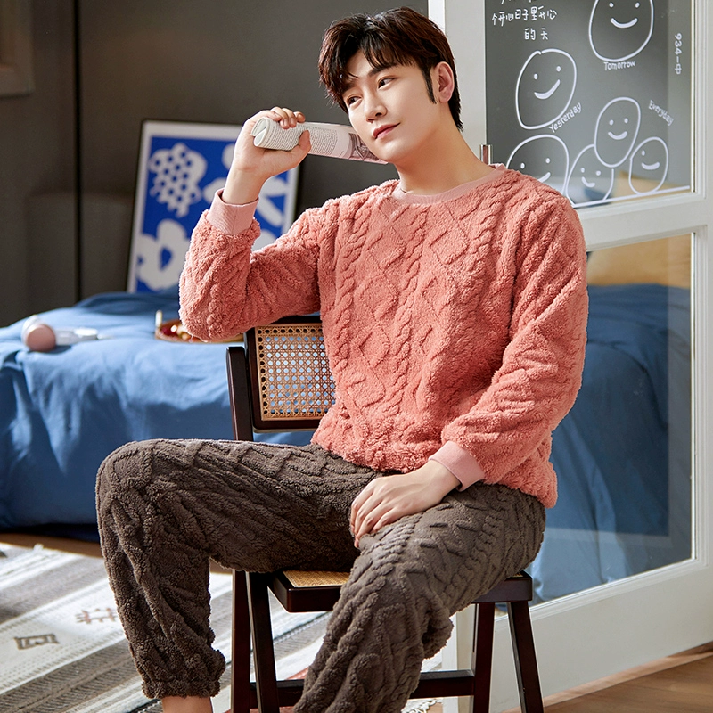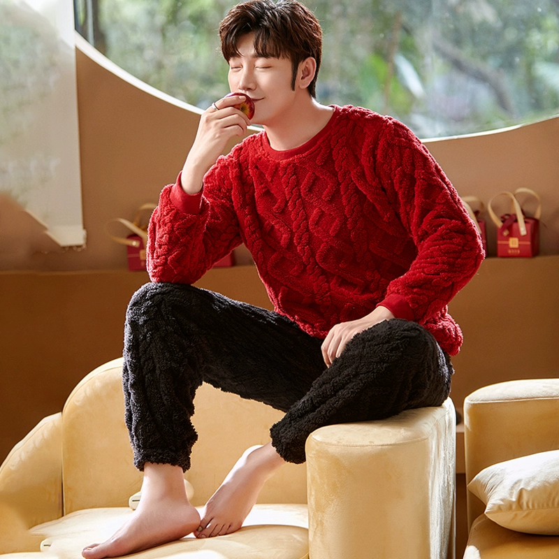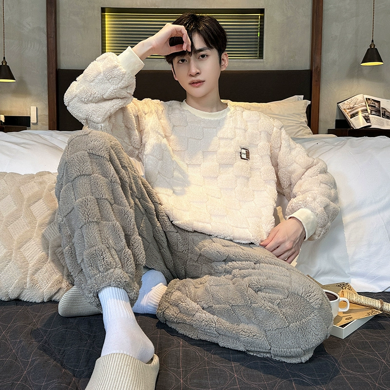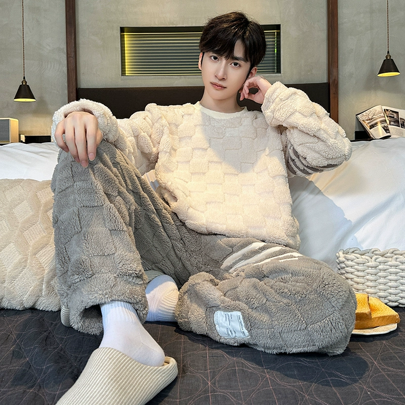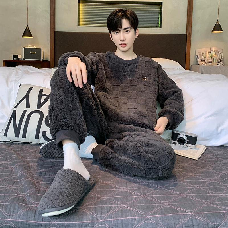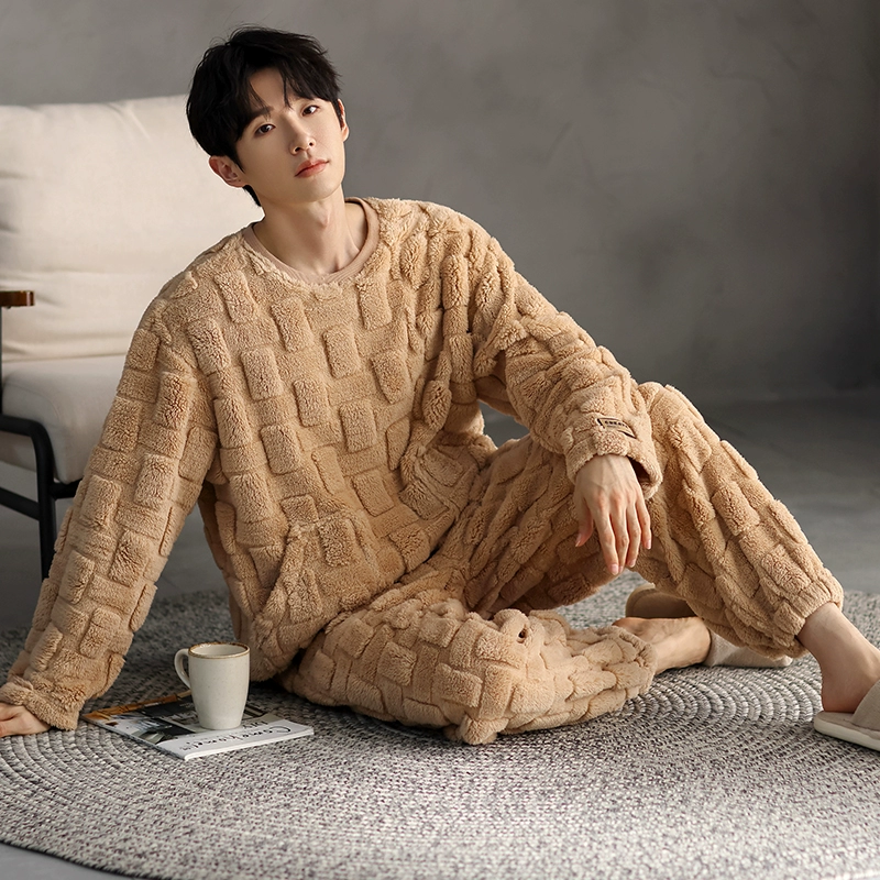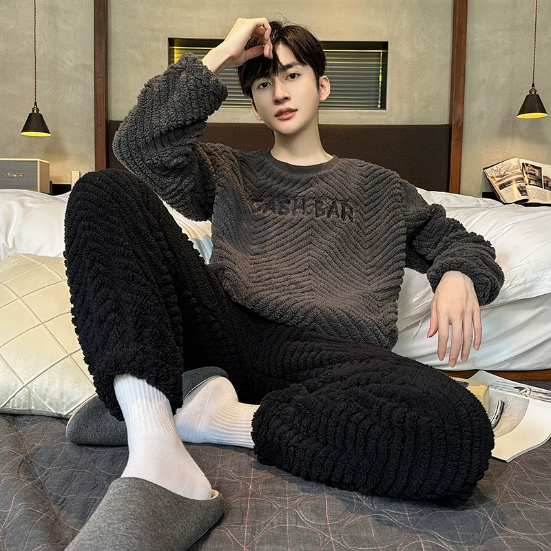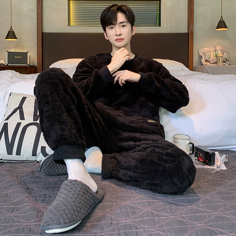 | nameOriginal | Coral velvet pajamas for men winter thickened plus velvet warm solid color round neck winter 2024 new home wear set |