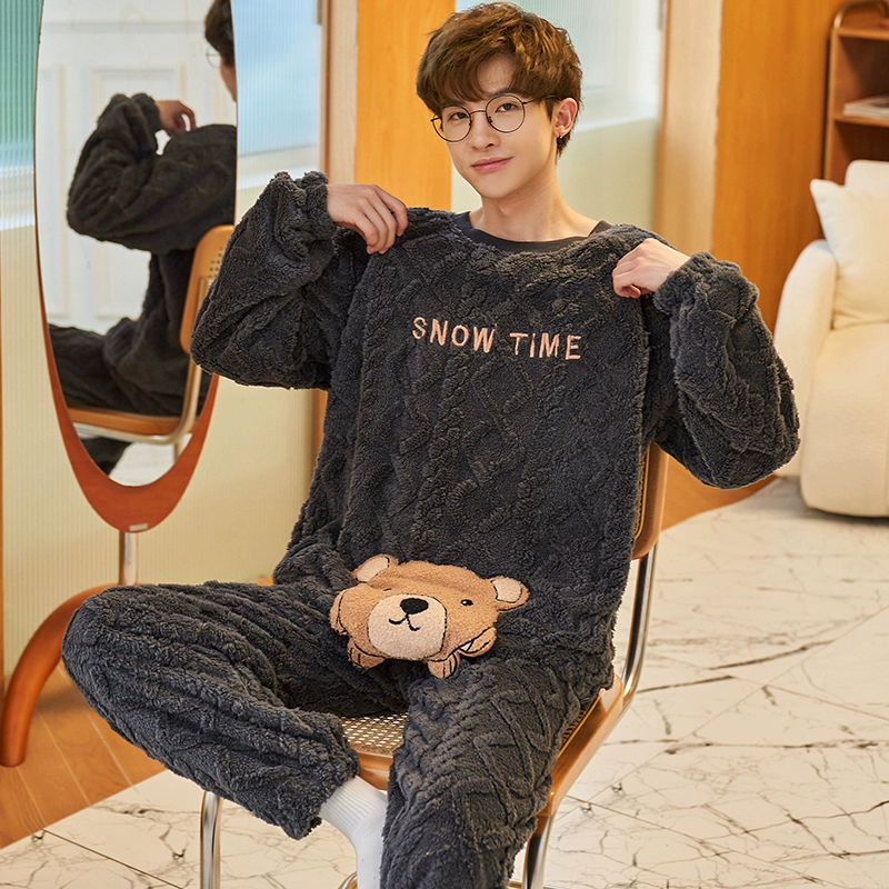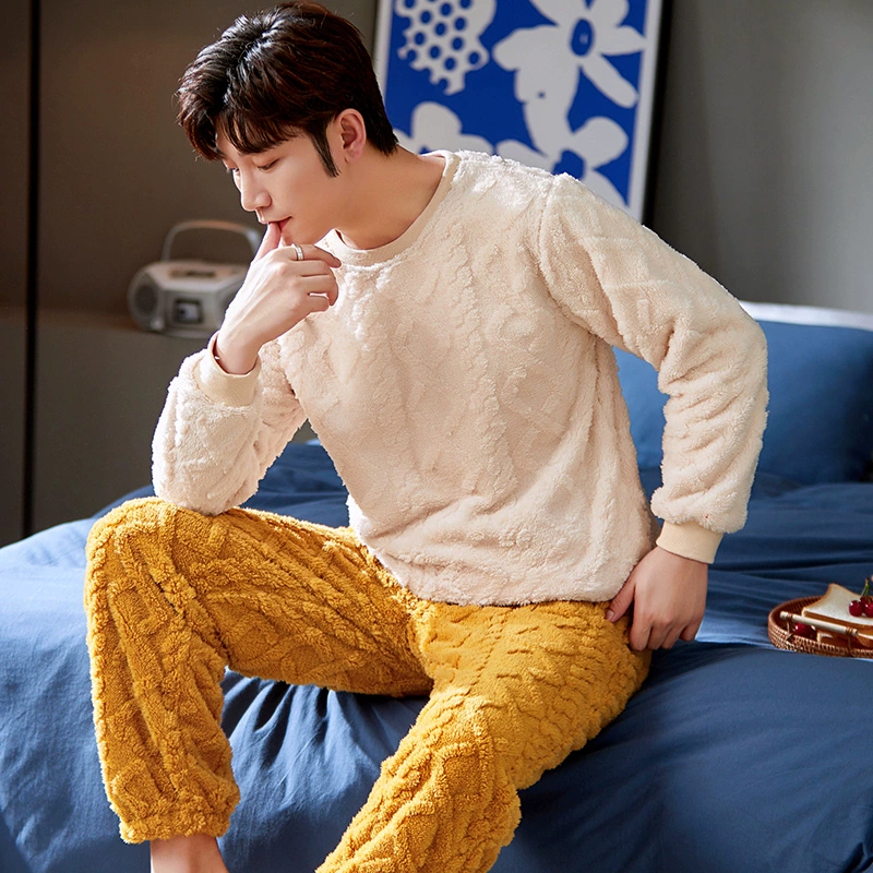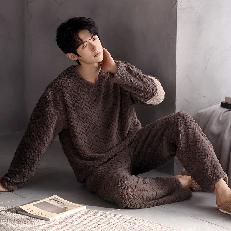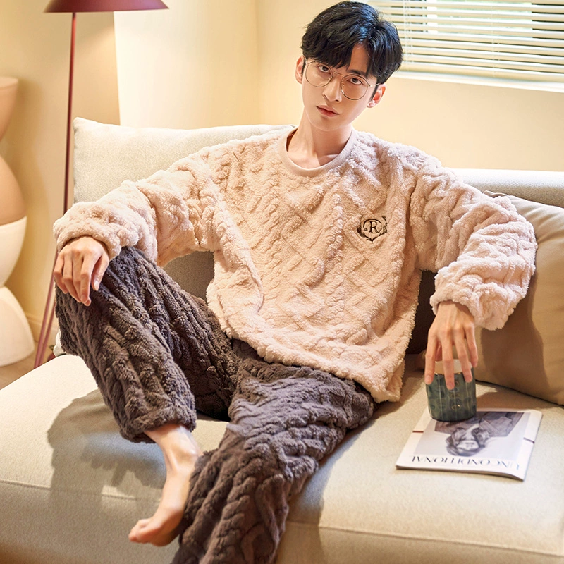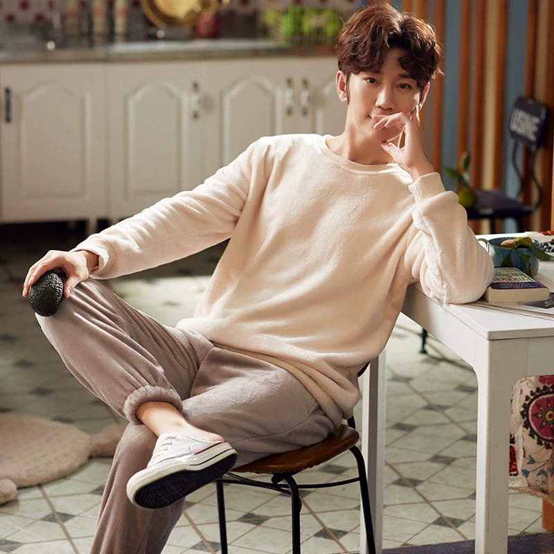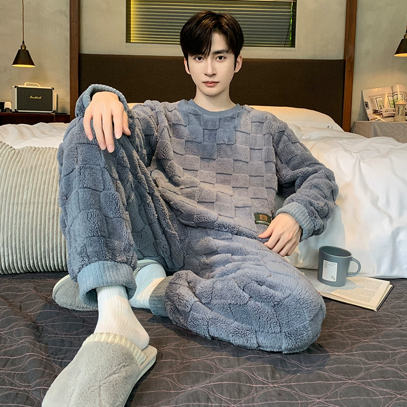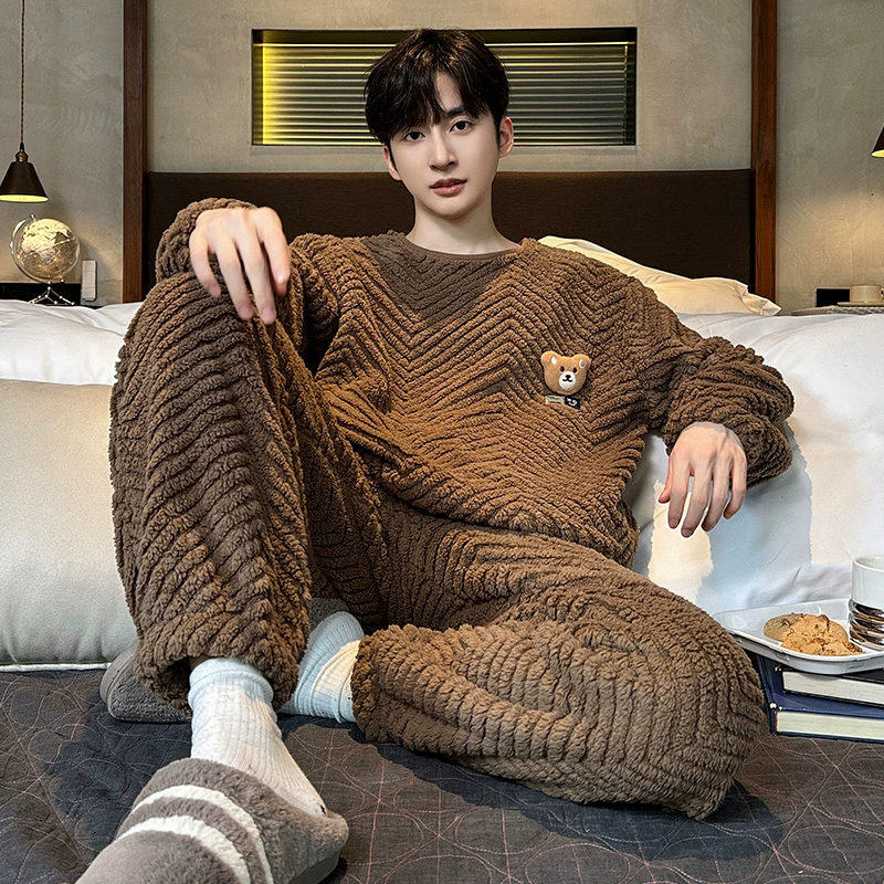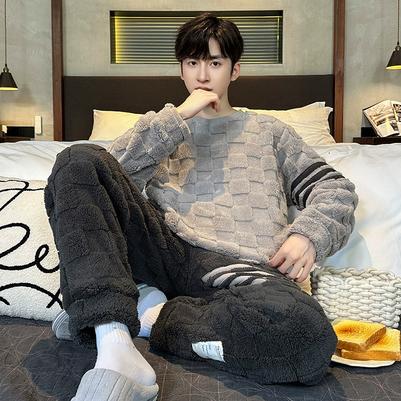 | nameOriginal | Coral velvet pajamas for men winter thickened plus velvet warm solid color round neck winter 2024 new home wear set |
