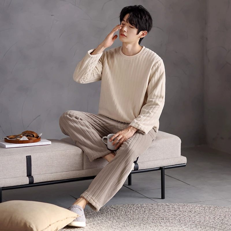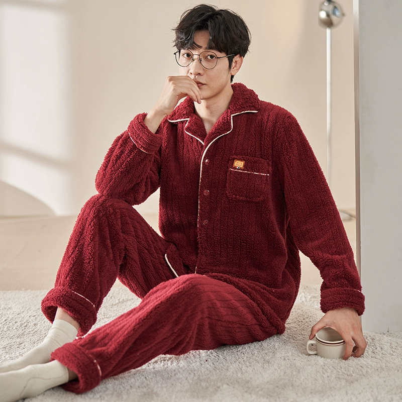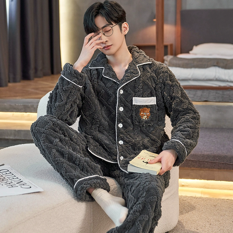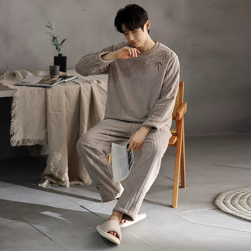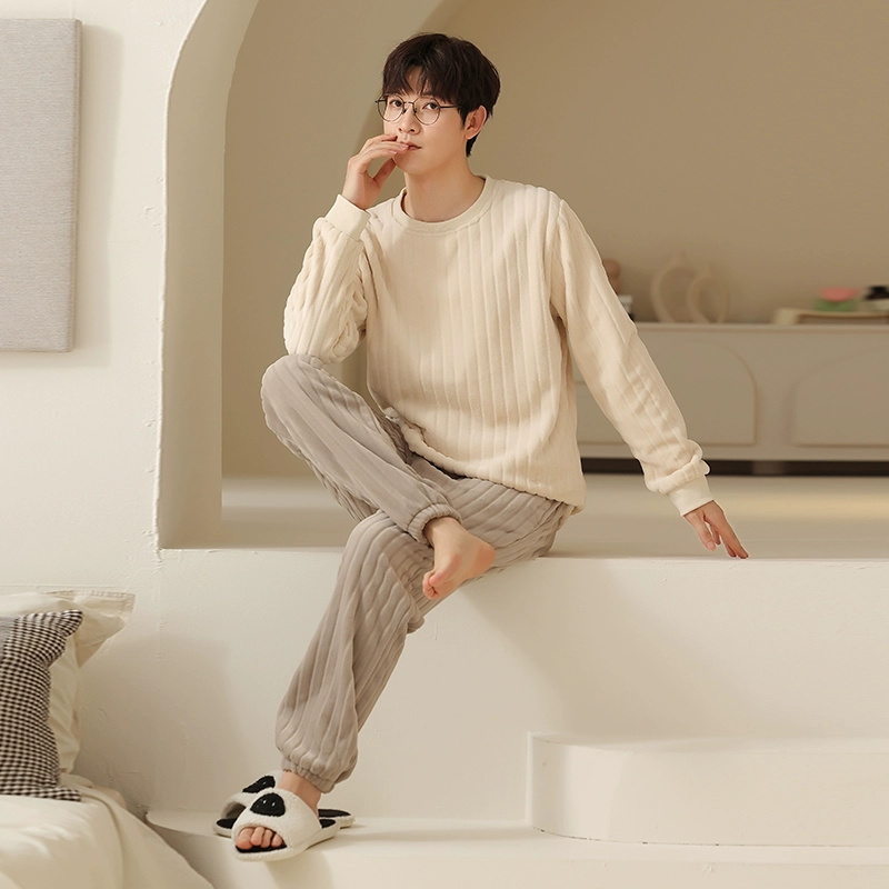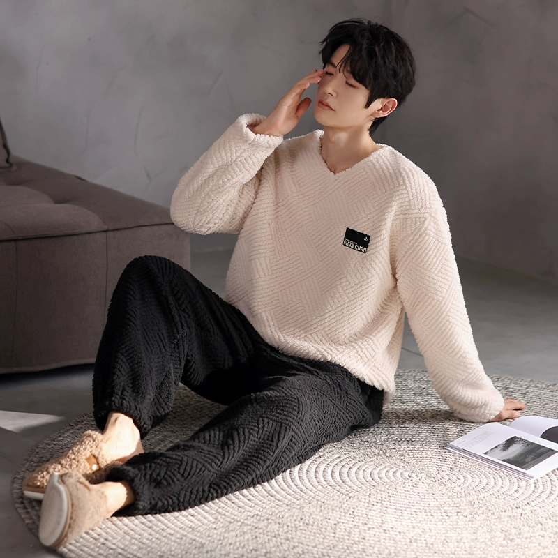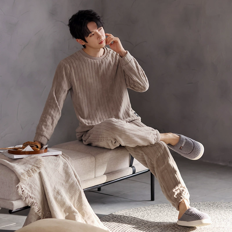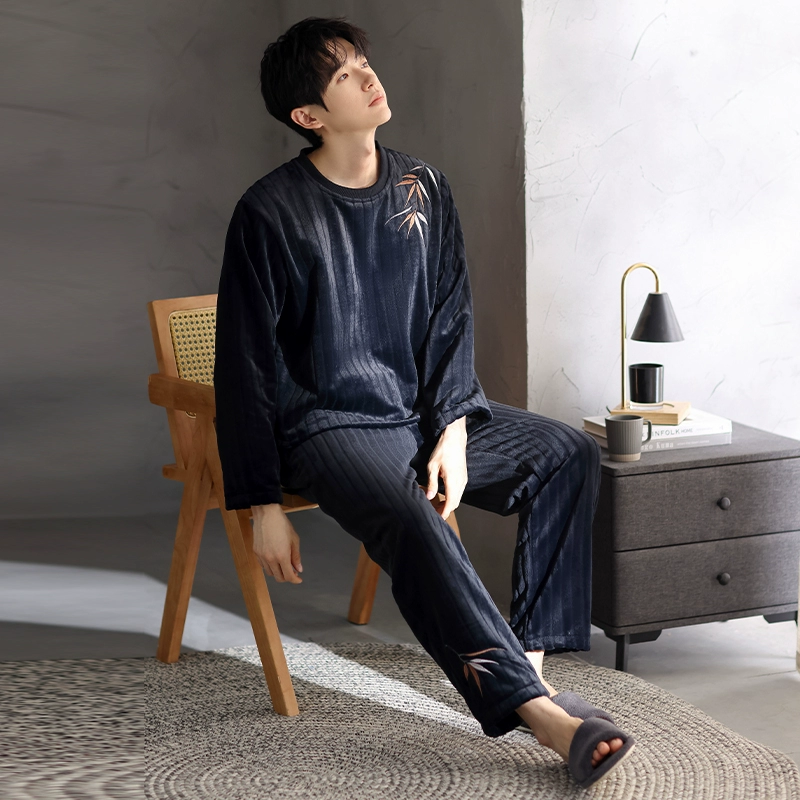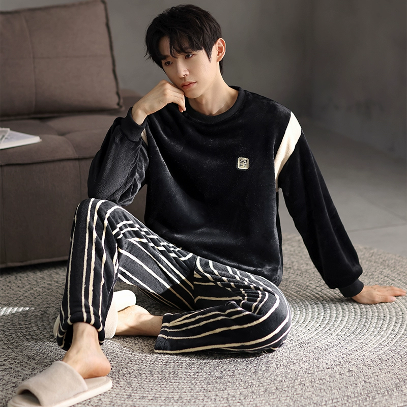 | nameOriginal | Coral velvet pajamas for men winter thickened plus velvet warm solid color round neck winter 2024 new home wear set |