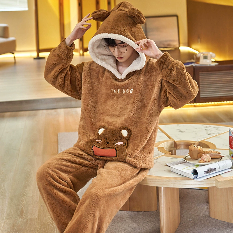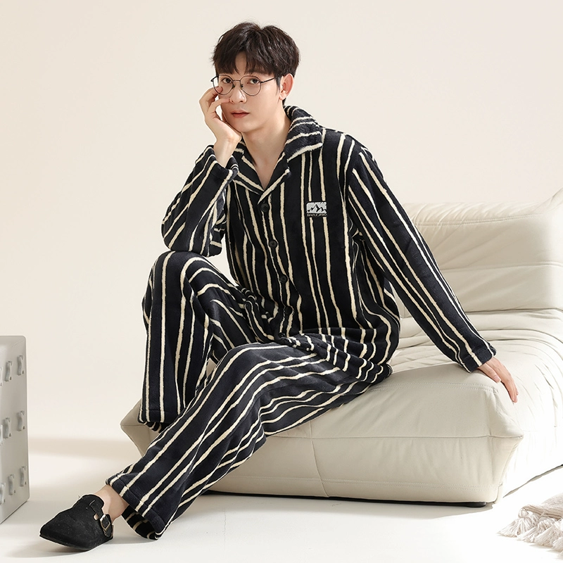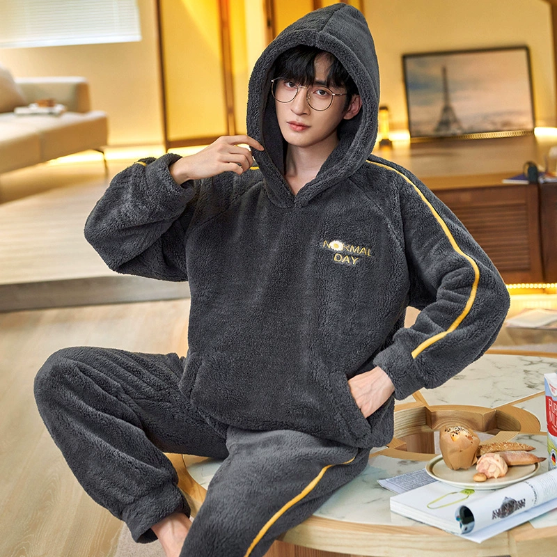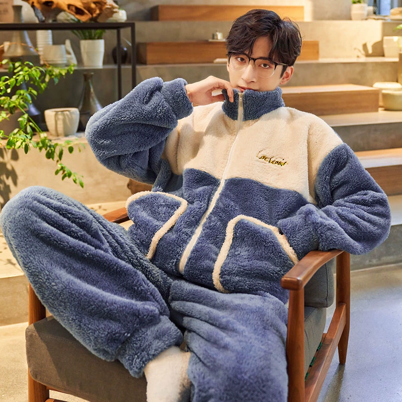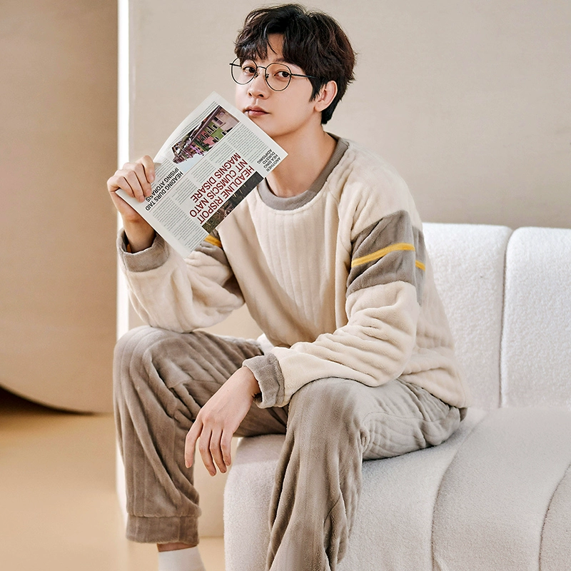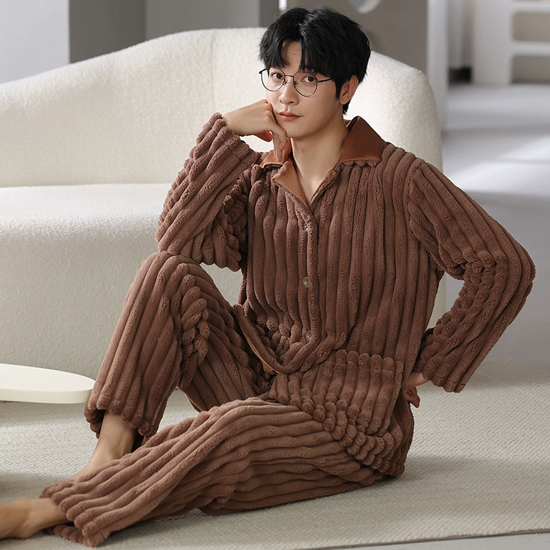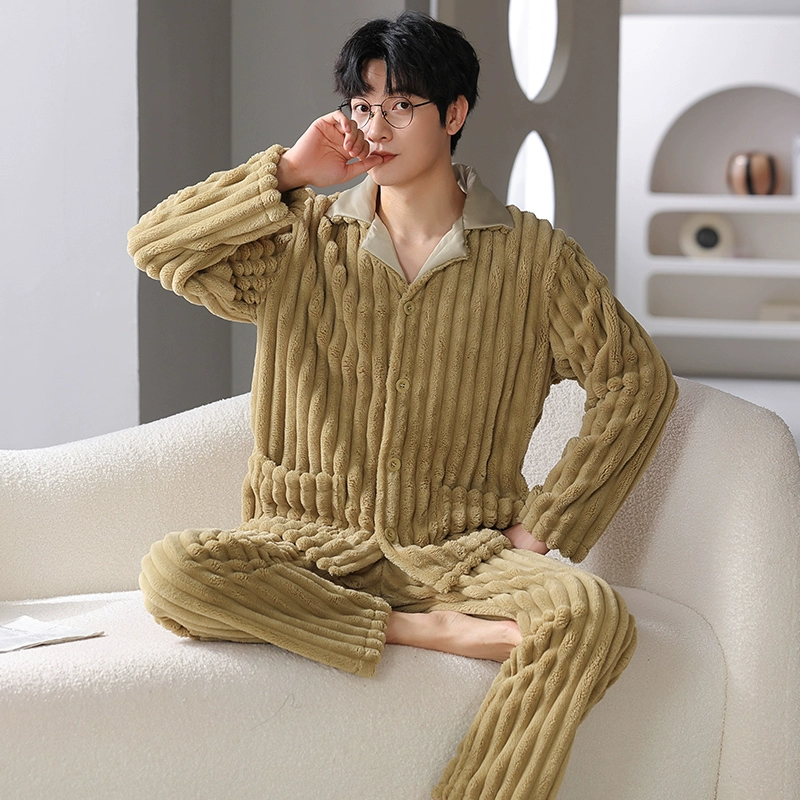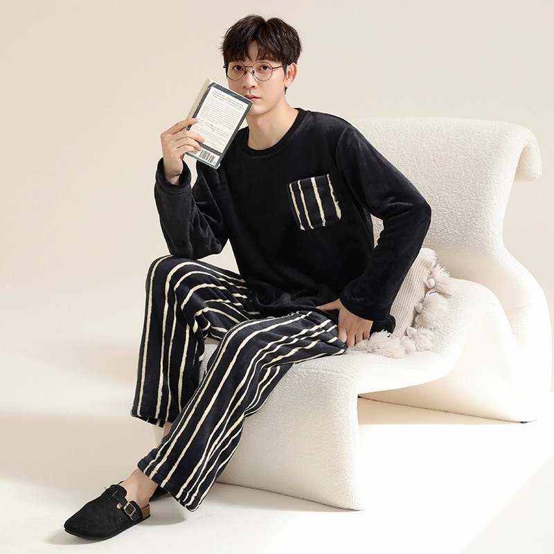 | nameOriginal | Coral velvet pajamas for men winter thickened plus velvet warm solid color round neck winter 2024 new home wear set |