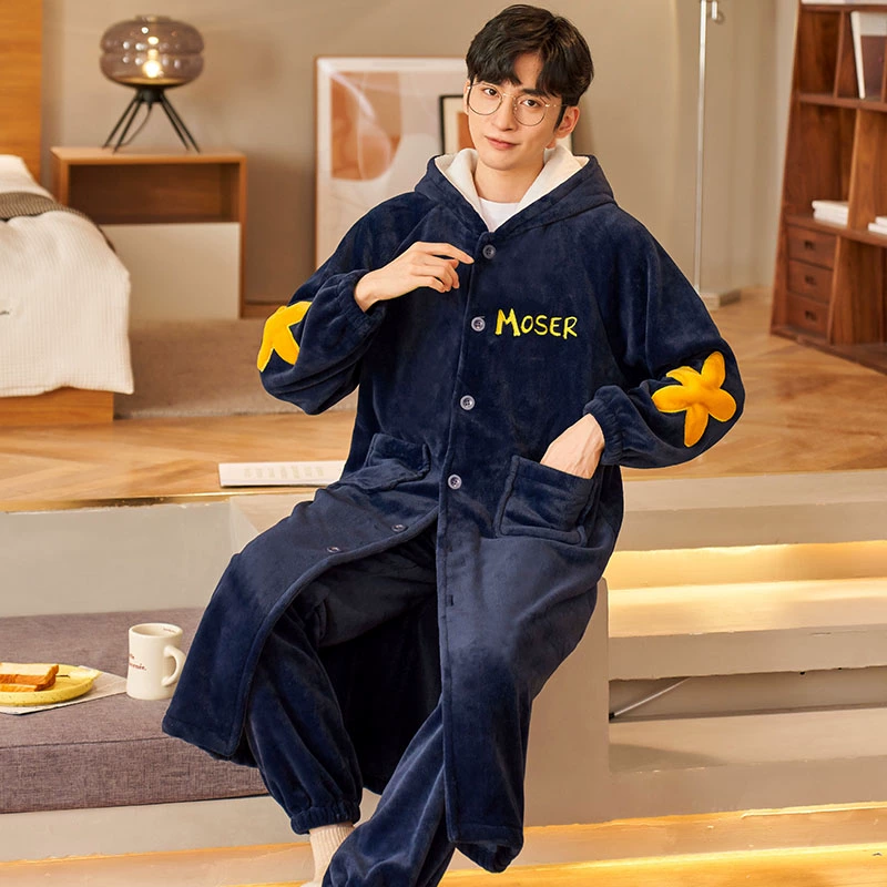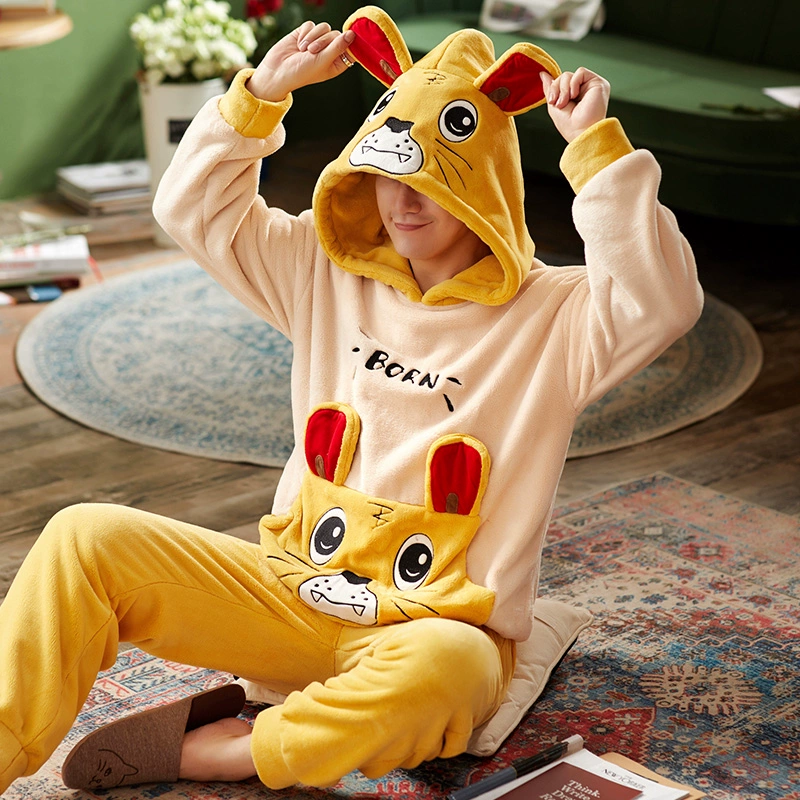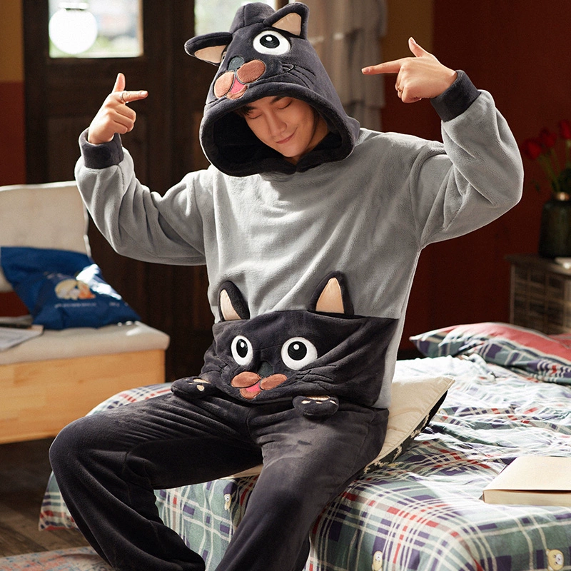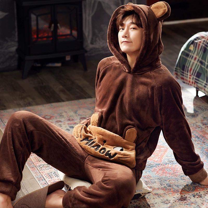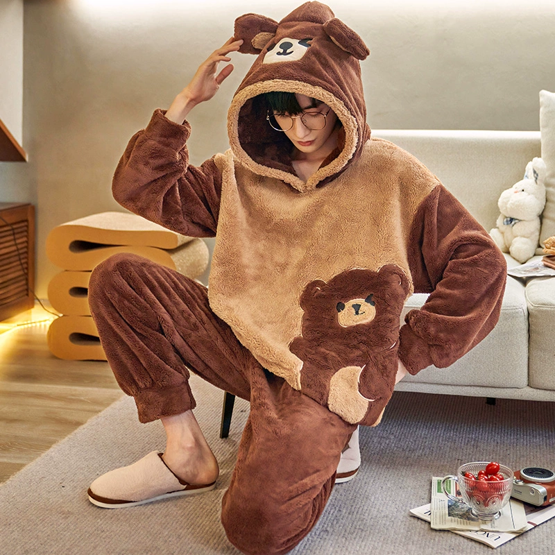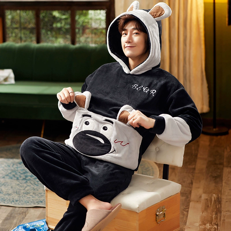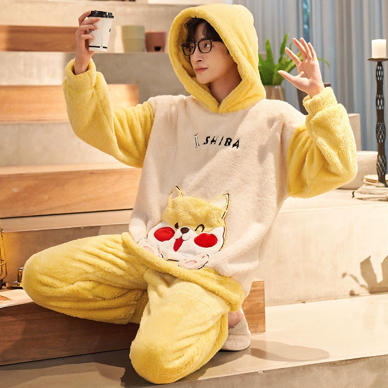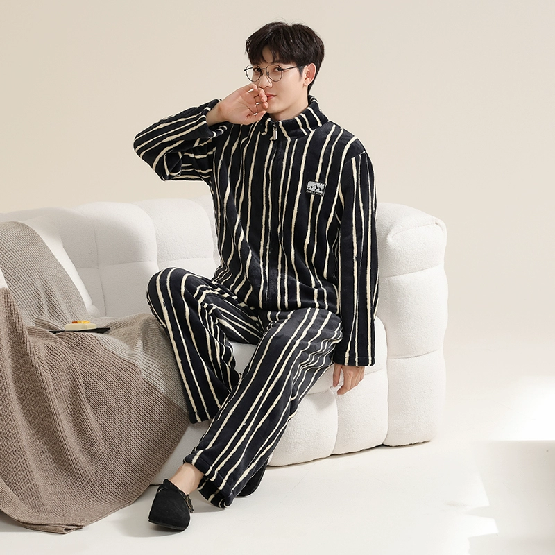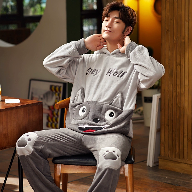 | nameOriginal | Coral velvet pajamas for men winter thickened plus velvet warm solid color round neck winter 2024 new home wear set |