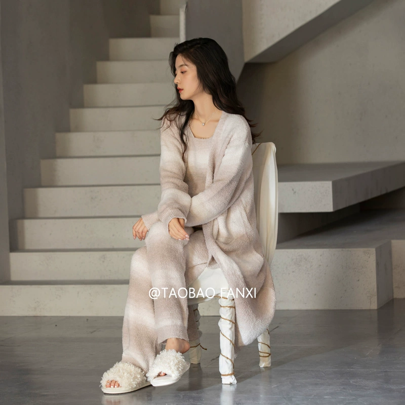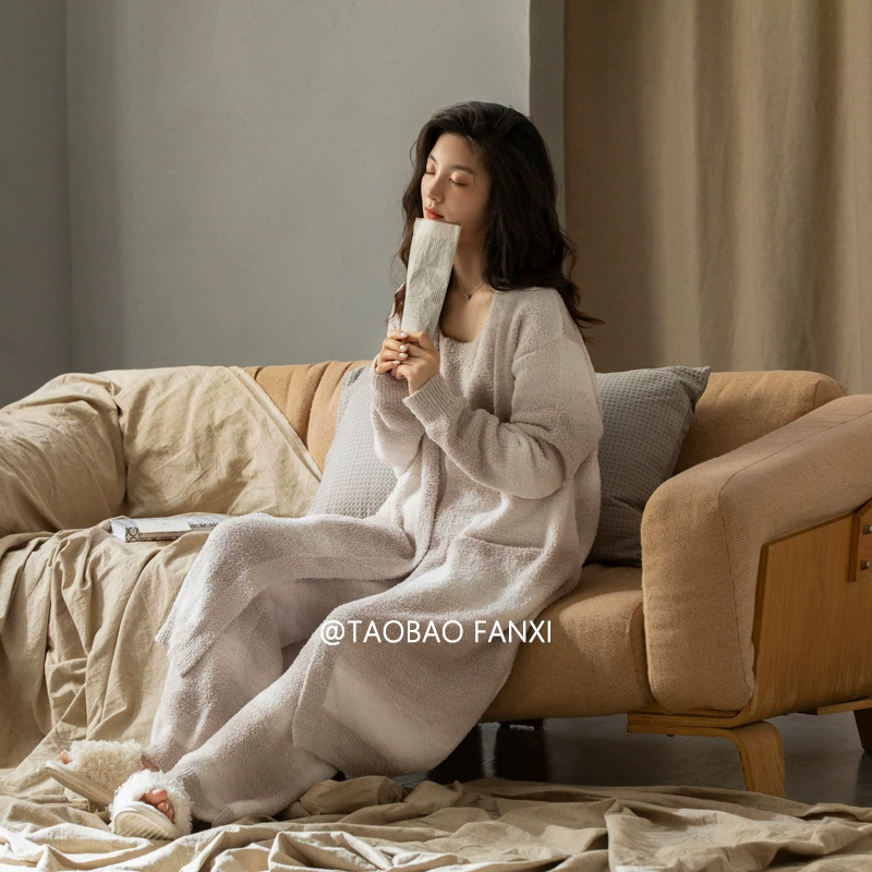 | nameOriginal | Coral velvet pajamas for women autumn and winter 2024 new soft half-velvet three-piece set thickened and velvet home clothes |