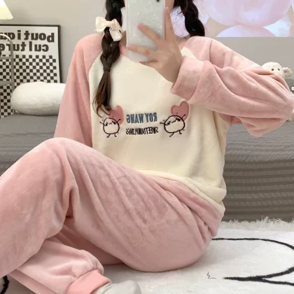 | nameOriginal | Coral velvet pajamas for women autumn and winter thickened plus velvet winter long-sleeved flannel 2024 new home wear set |