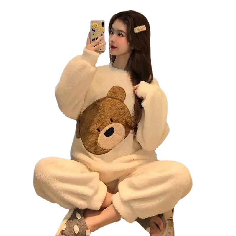 | nameOriginal | Coral velvet pajamas for women autumn and winter thickened velvet flannel women's suit students Korean version cute home clothes spring |