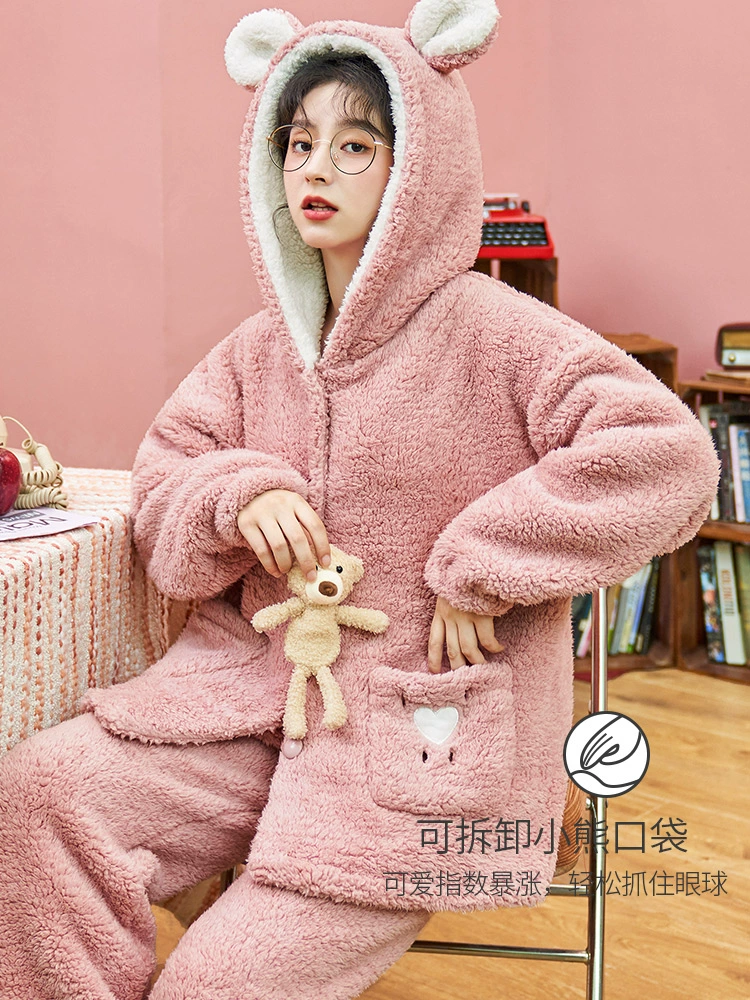 | nameOriginal | Coral velvet pajamas for women autumn and winter thickened velvet home clothes set 2024 new flannel can be worn outside |