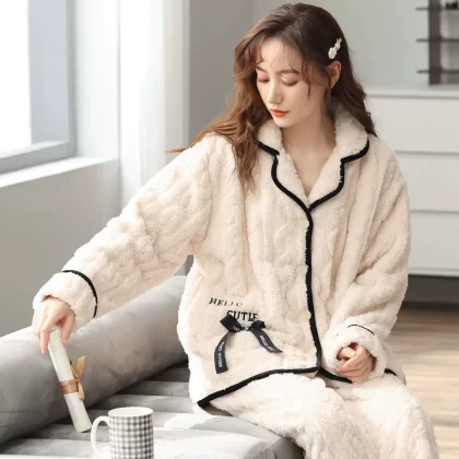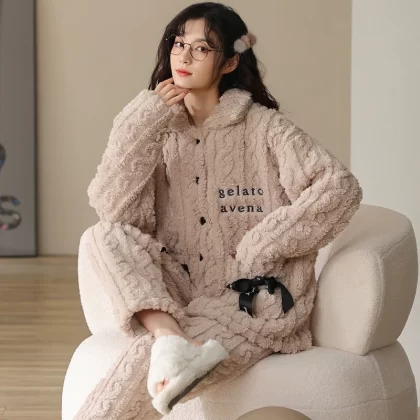 | nameOriginal | Coral velvet pajamas for women autumn and winter thickened velvet warm confinement clothes flannel home clothes set women's pajamas |