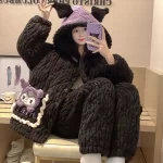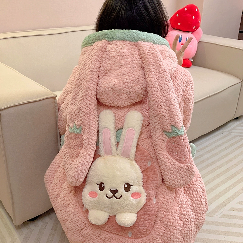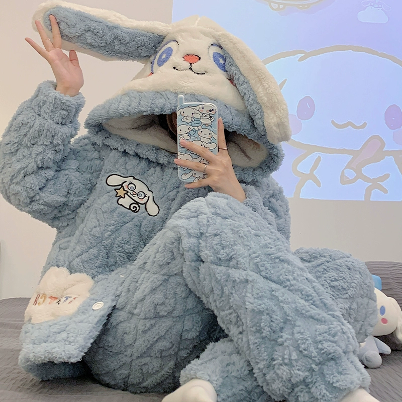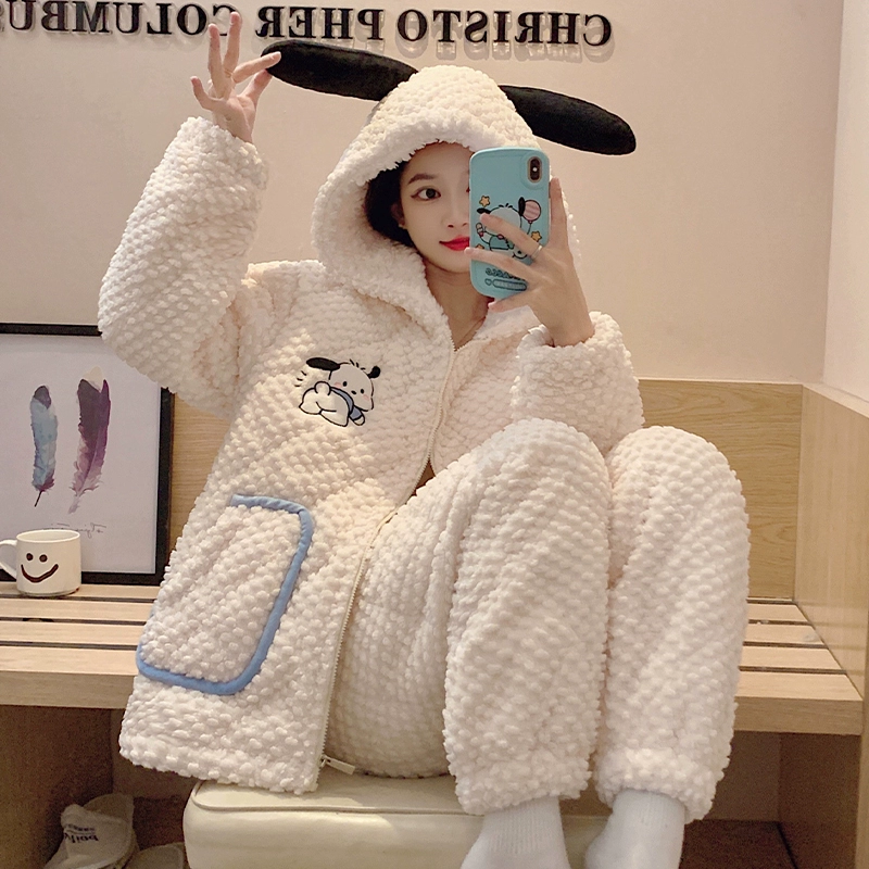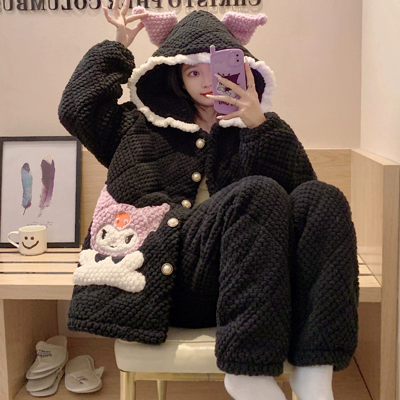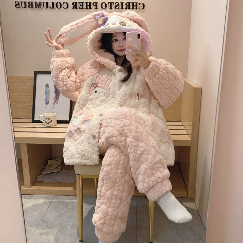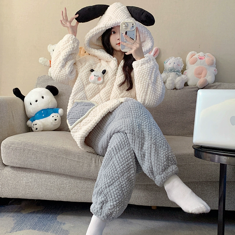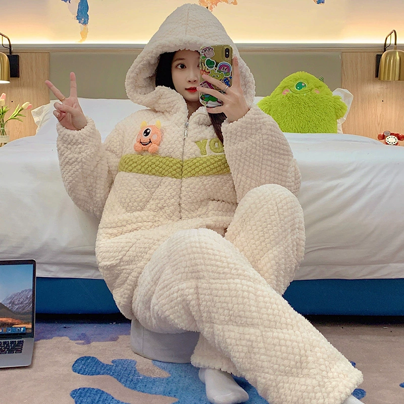| nameOriginal | Coral velvet pajamas for women autumn and winter three-layer quilted thickened plus velvet warm hooded flannel homewear set |