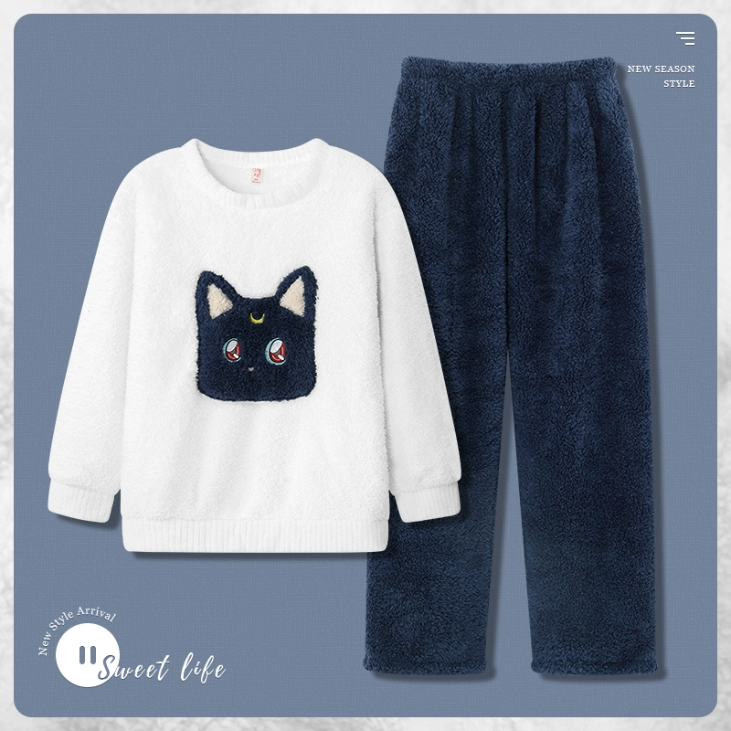 | nameOriginal | Coral velvet pajamas for women in autumn and winter thickened and velvet cartoon cats can be worn outside Internet celebrity style home clothes suit winter |