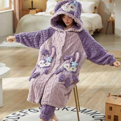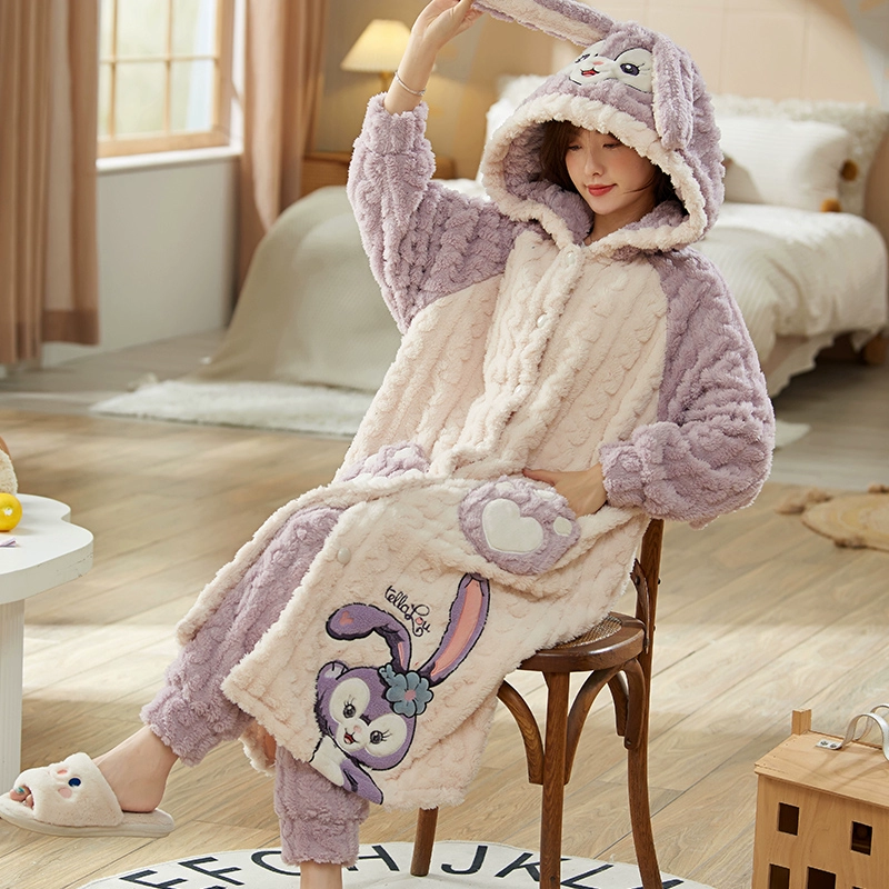 | nameOriginal | Coral velvet pajamas for women in autumn and winter thickened plus velvet pajamas for winter Star Dew new flannel home clothes set |