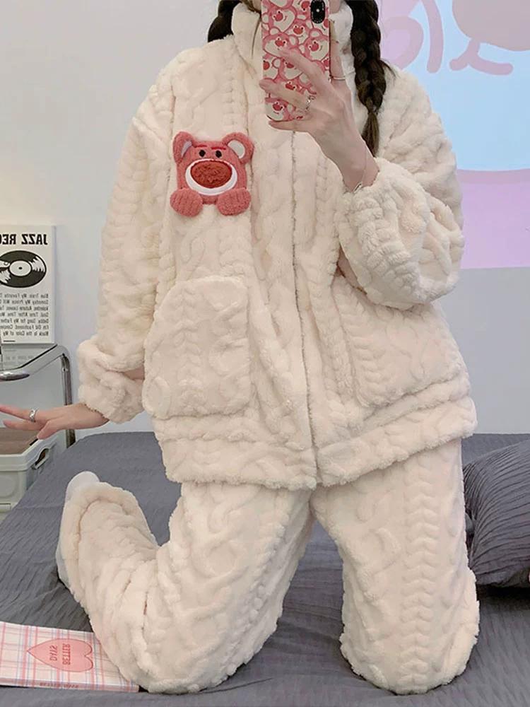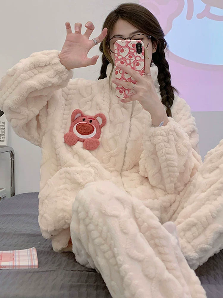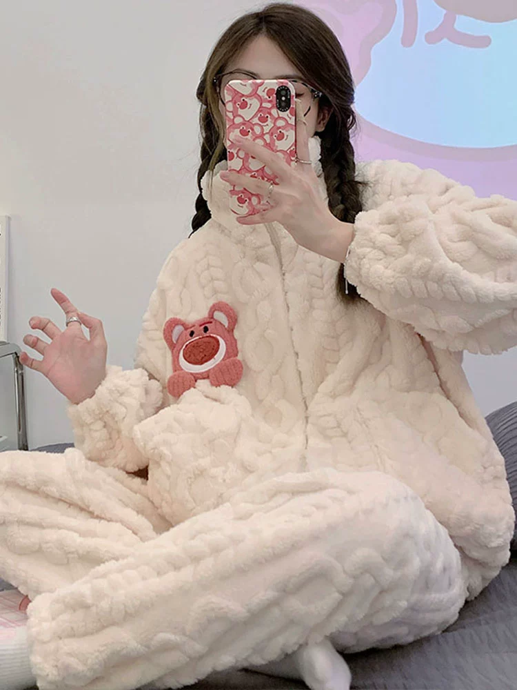 | nameOriginal | Coral velvet pajamas for women in winter, plus velvet and thickening, Internet celebrity style bear zipper, can be worn outside, autumn and winter home clothes |