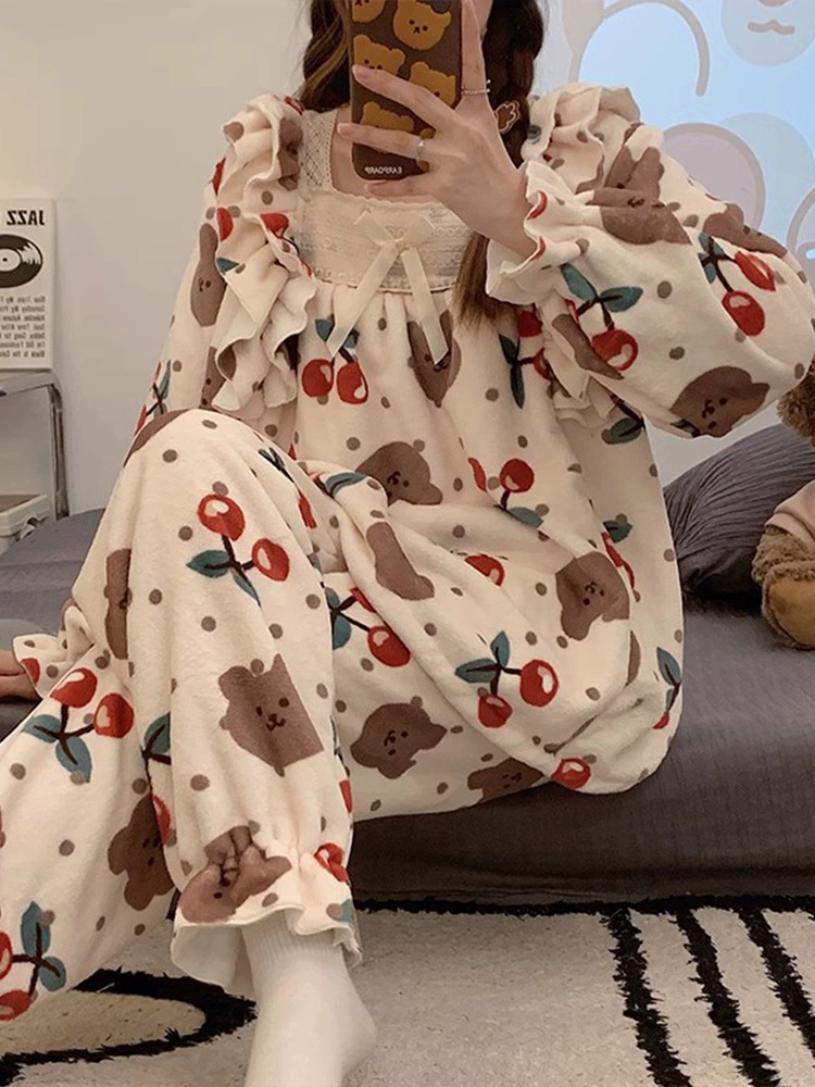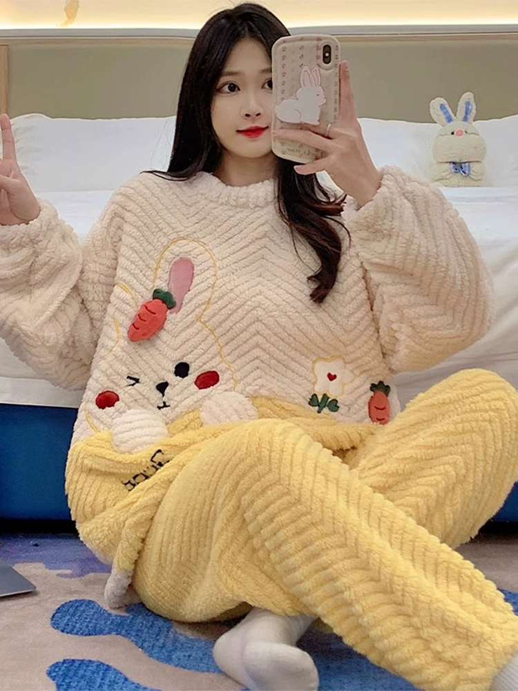 | nameOriginal | Coral velvet pajamas for women in winter, thickened and velvet, long-sleeved, warm and wearable, flannel spring and autumn home clothes set |