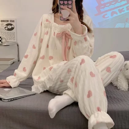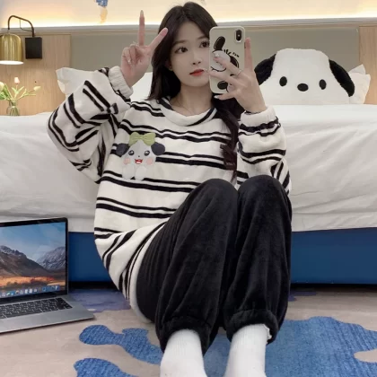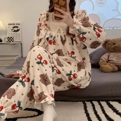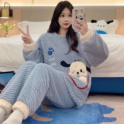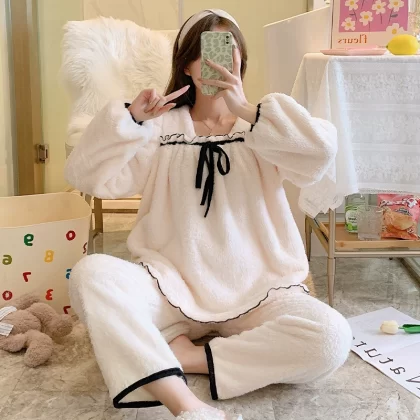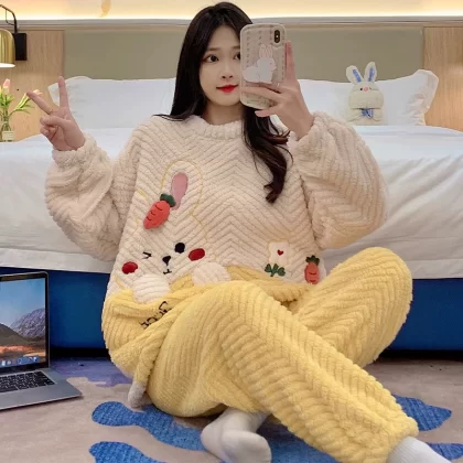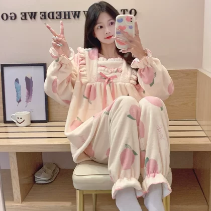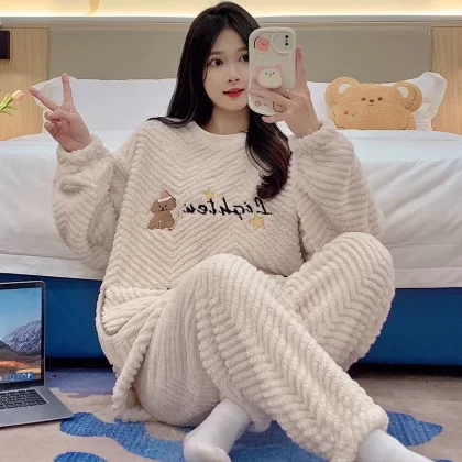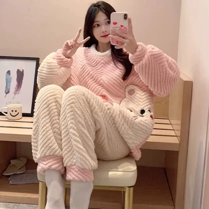 | nameOriginal | Coral velvet pajamas for women in winter, thickened and velvet, long-sleeved, warm and wearable, flannel spring and autumn home clothes set |