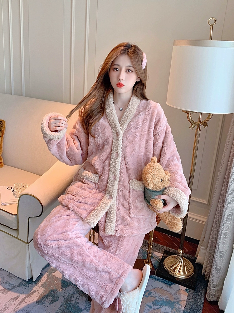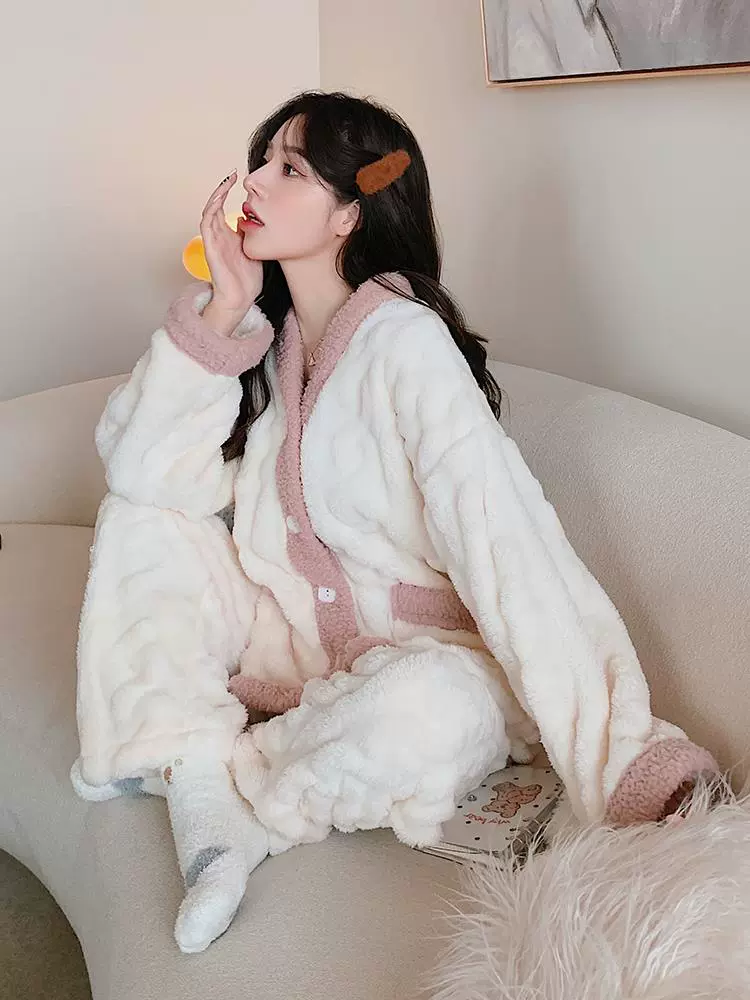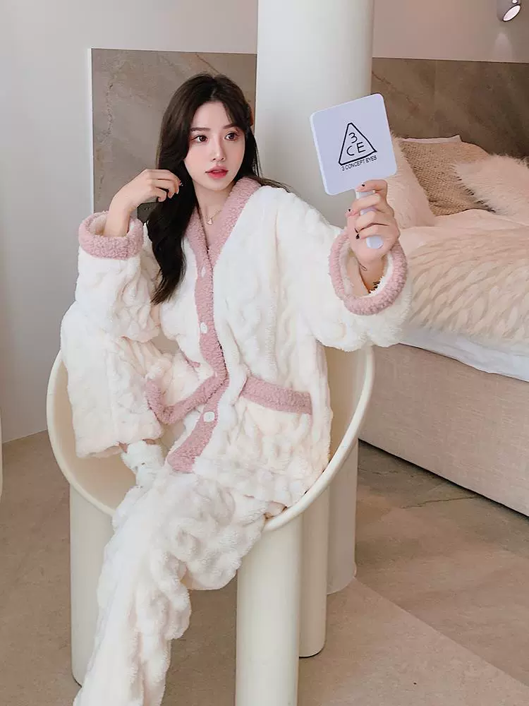 | nameOriginal | Coral velvet pajamas for women new 2024 autumn and winter thickened plus velvet small fragrance style can be worn outside home clothes set |