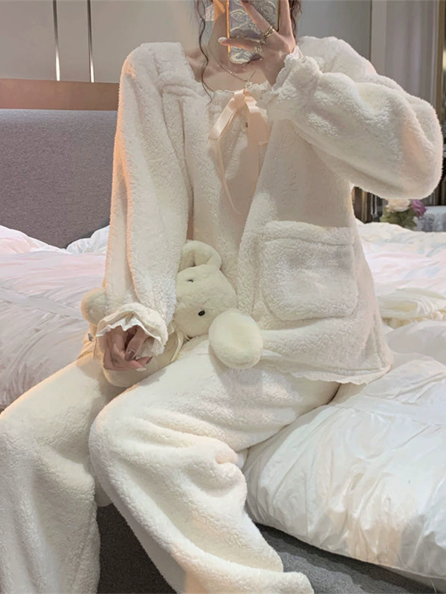 | nameOriginal | Coral velvet pajamas for women new style small fragrance plus velvet thickened winter Korean style lace sweet student home wear set |