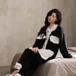 Coral velvet pajamas for women winter plus velvet 2024 new thickened flannel home clothes can be worn outside the warm suit