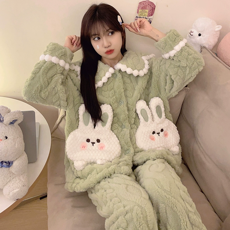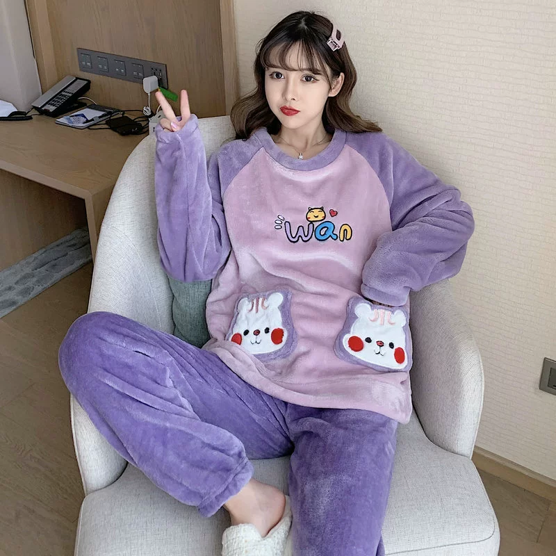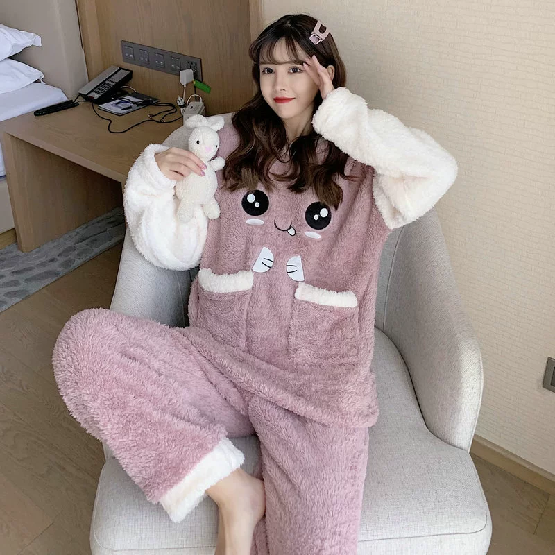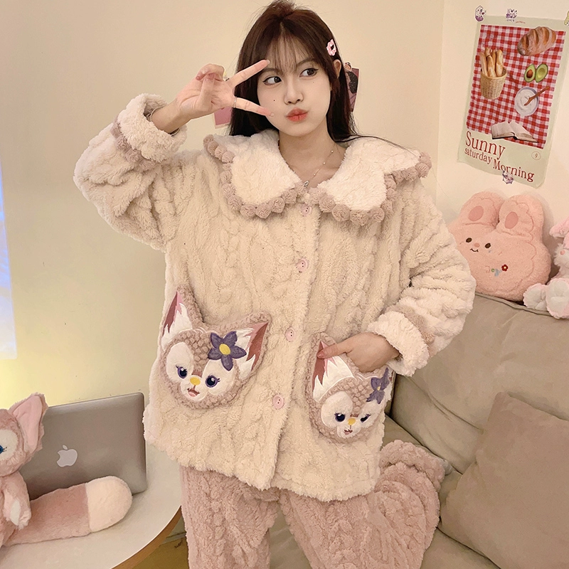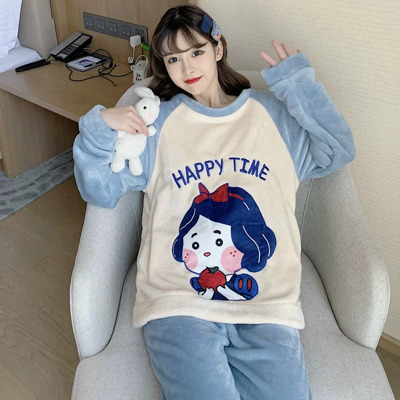 | nameOriginal | Coral velvet pajamas for women winter plus velvet and thickened 2024 new cartoon cute flannel autumn and winter home wear set |