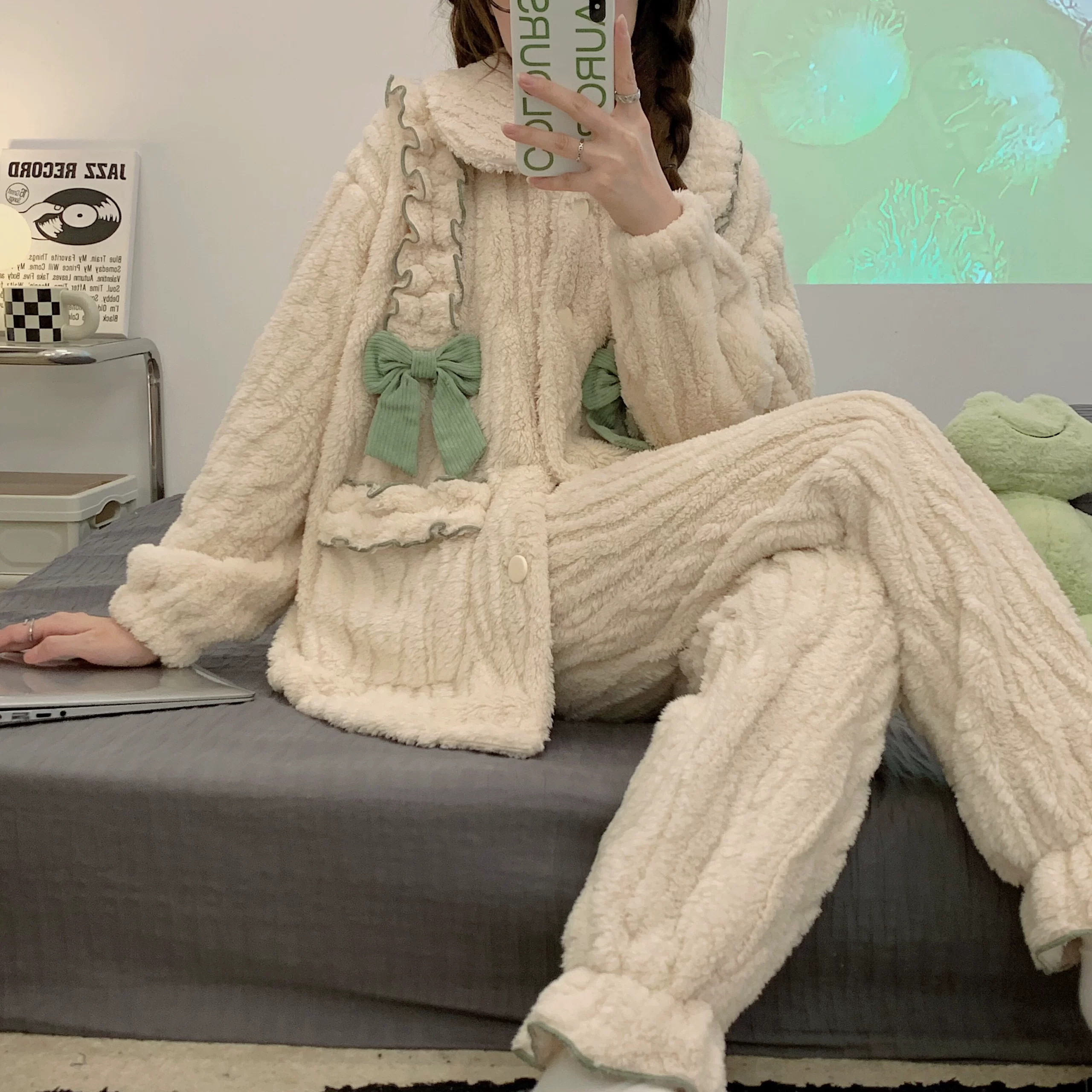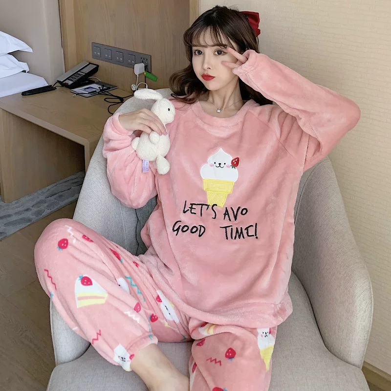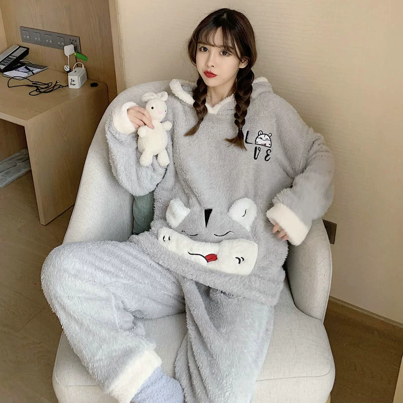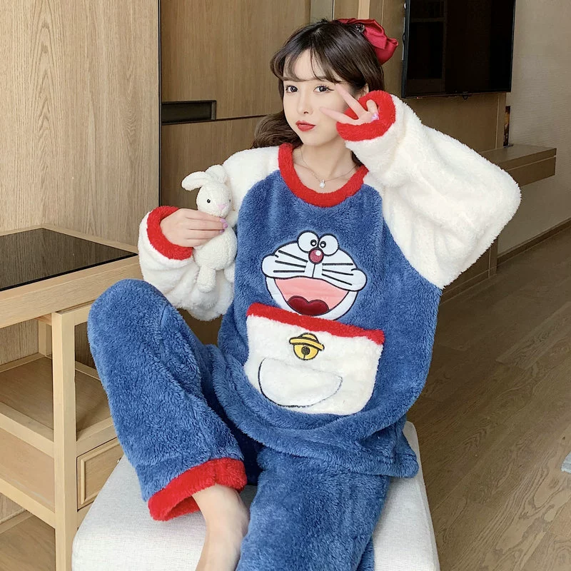 | nameOriginal | Coral velvet pajamas for women winter plus velvet and thickened 2024 new cartoon cute flannel autumn and winter home wear set |