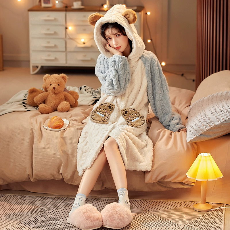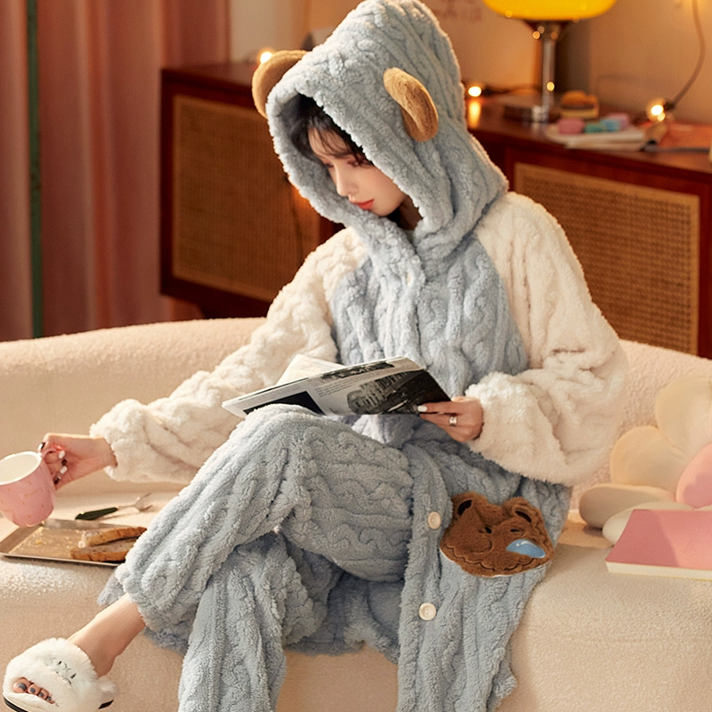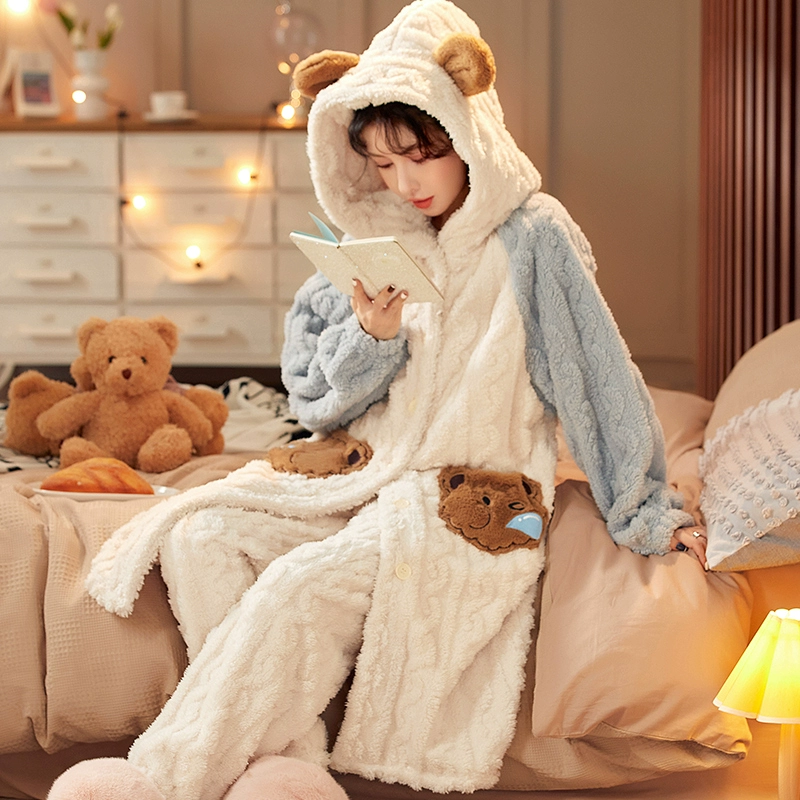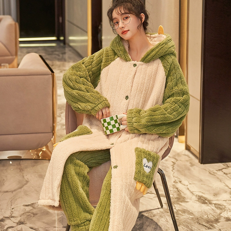 | nameOriginal | Coral velvet pajamas for women winter plus velvet thickened flannel pajamas long can be worn outside home clothes set 2023 new style |