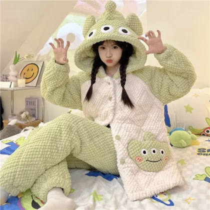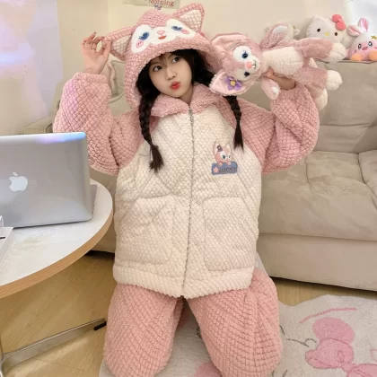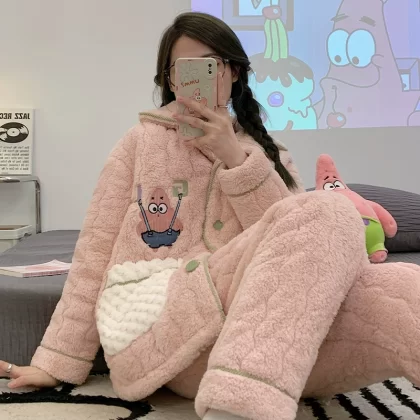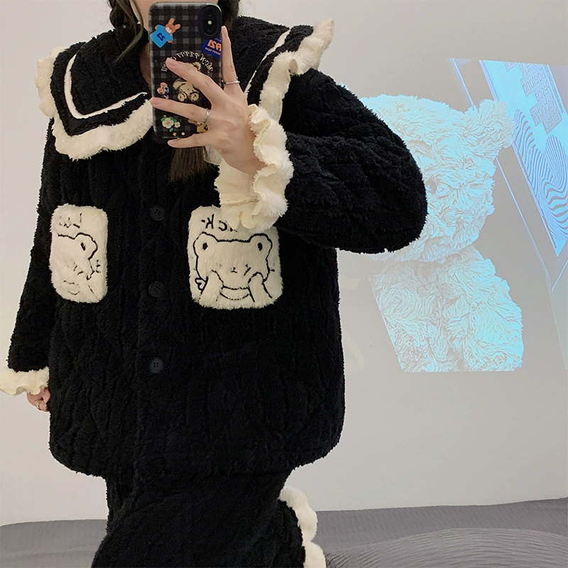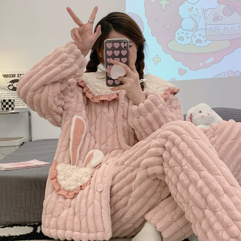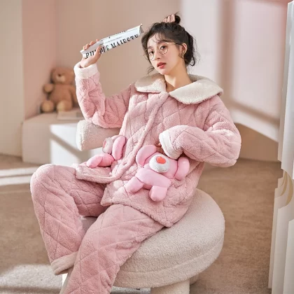 | nameOriginal | Coral velvet pajamas for women winter plus velvet thickening autumn 2024 new three-layer quilted jacket autumn and winter home wear set |