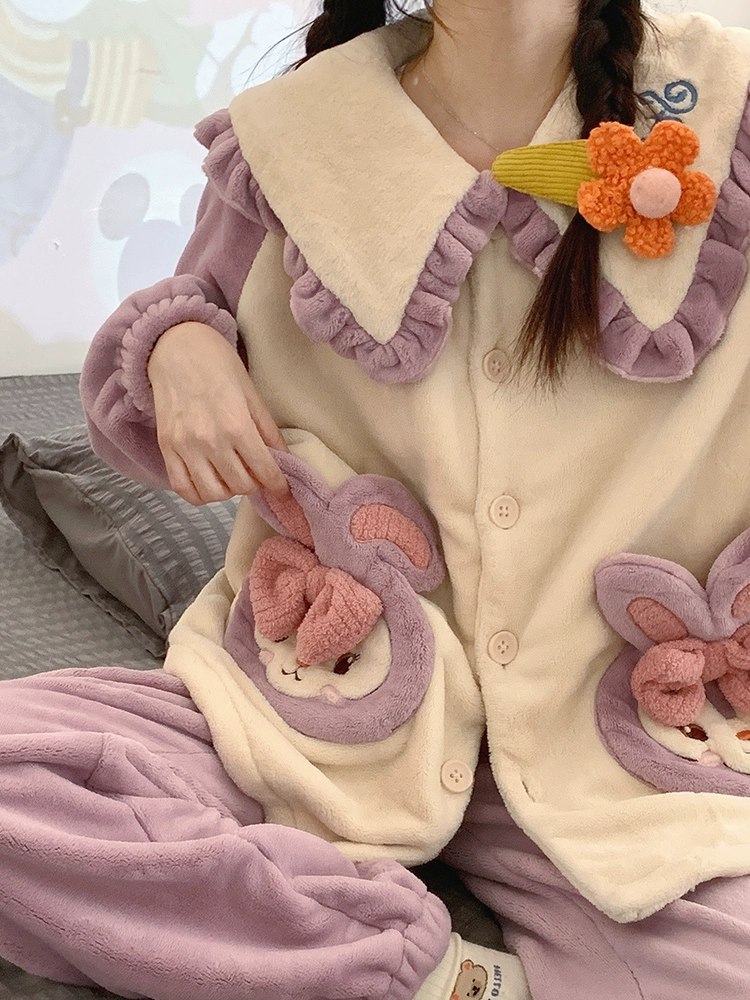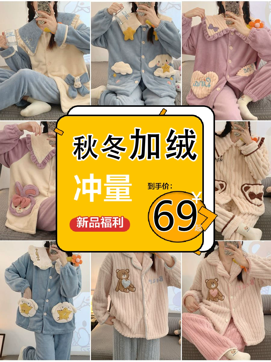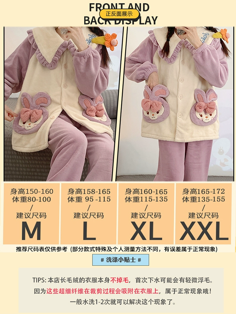 | nameOriginal | Coral velvet pajamas for women winter spring and autumn thickened plus velvet women's long-sleeved cardigan warm flannel home wear set |