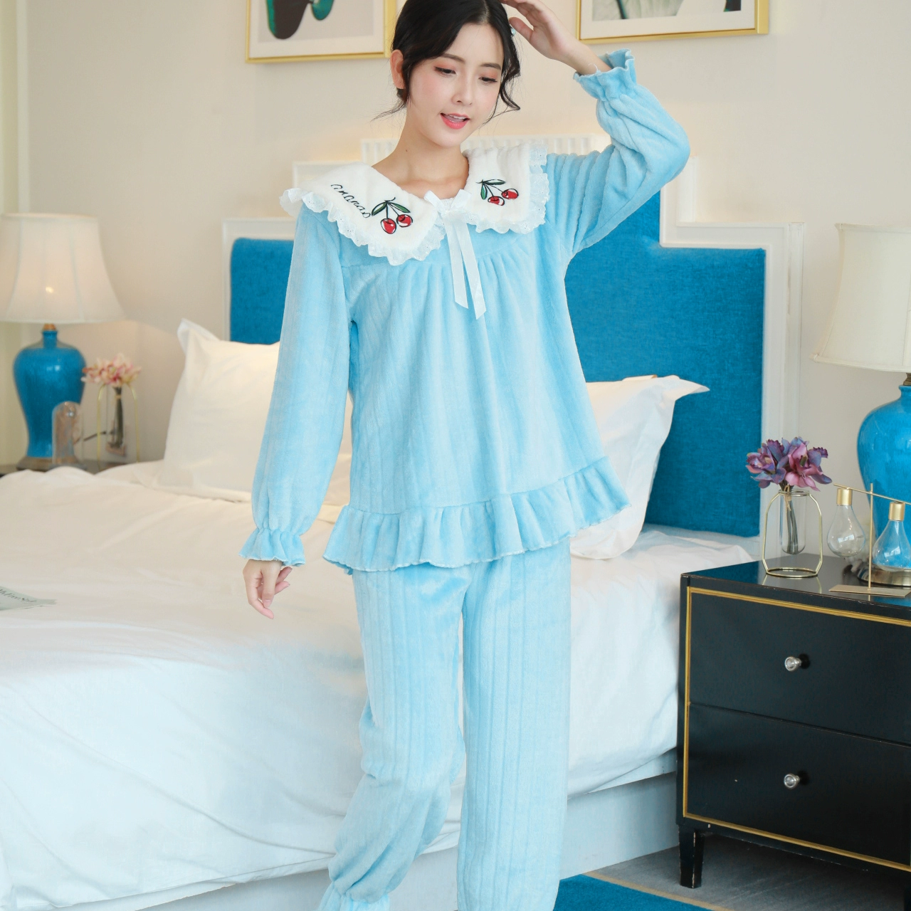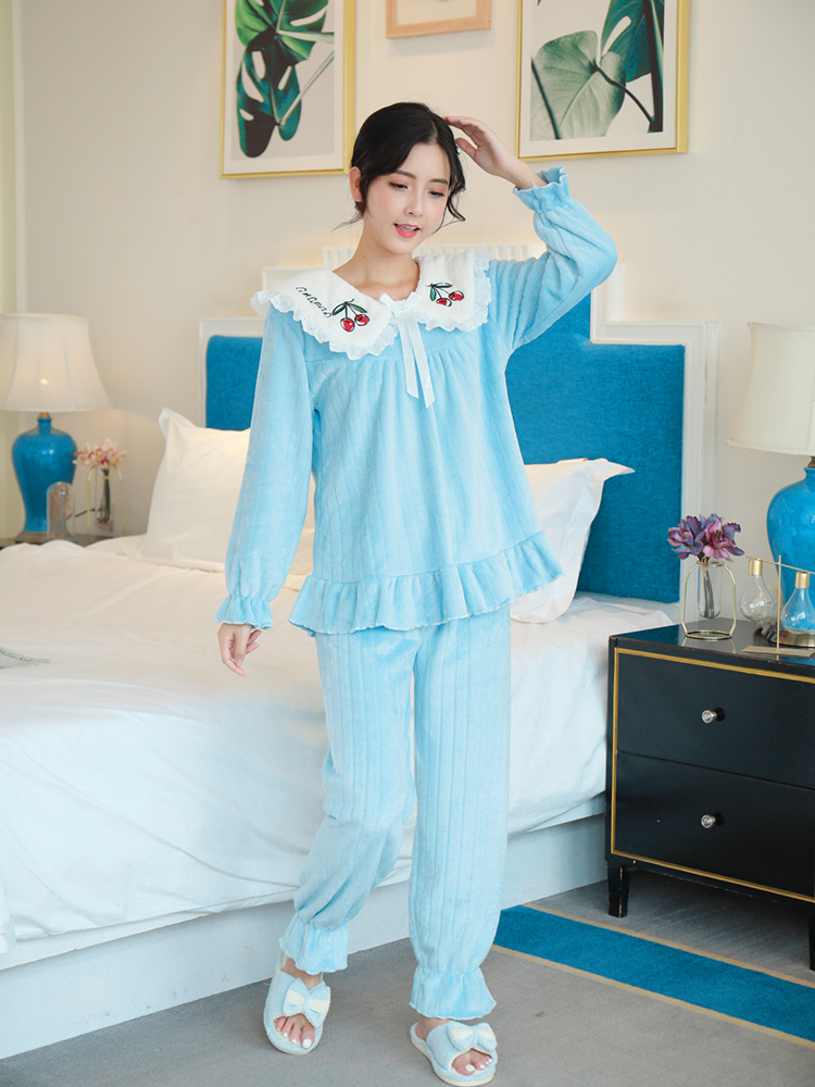 | nameOriginal | Coral velvet pajamas for women winter thickened plus velvet cute set flannel princess style women's home clothes autumn and winter |