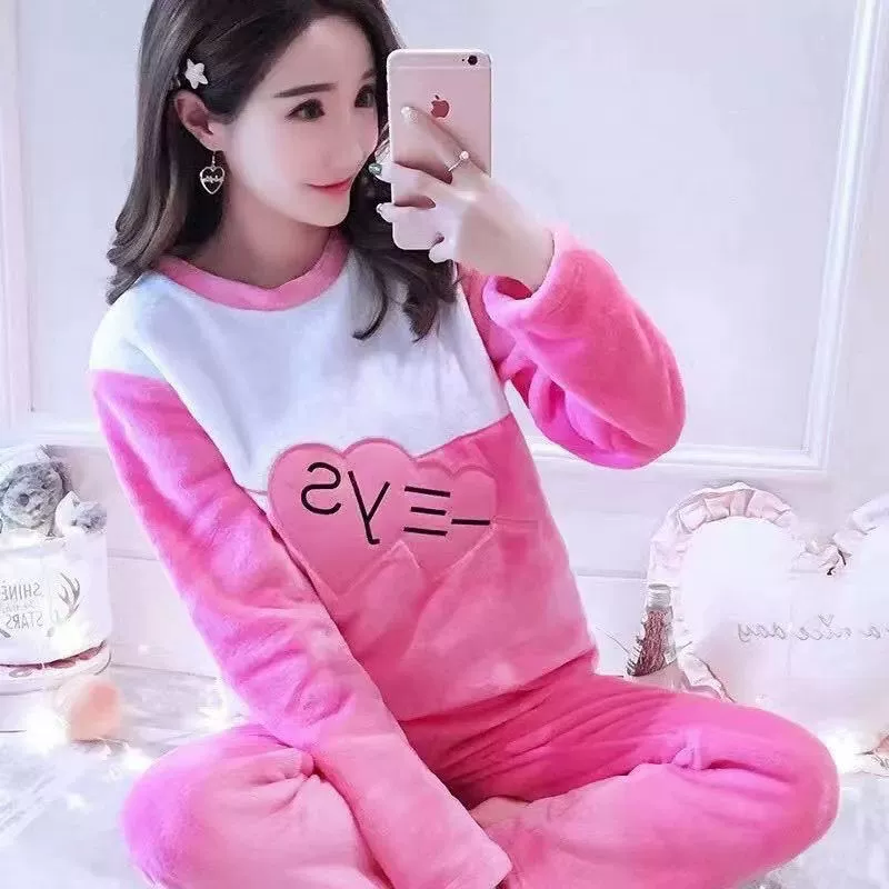| nameOriginal | Coral velvet pajamas for women winter thickened plus velvet Korean style sweet and cute autumn and winter flannel long-sleeved home wear set |