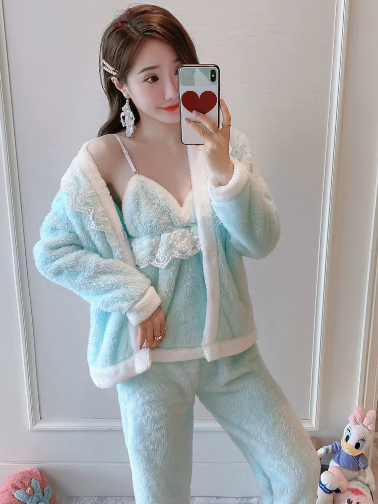 | nameOriginal | Coral velvet pajamas for women winter thickened plus velvet sexy flannel warm home clothes three-piece suit spring and autumn |