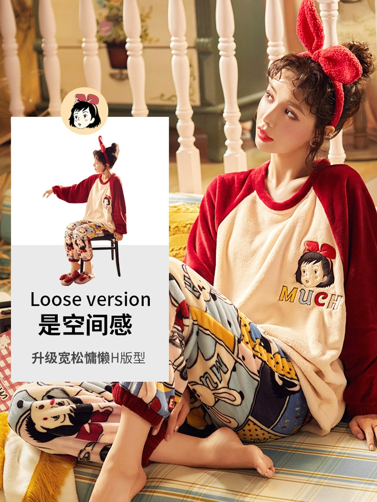 | nameOriginal | Coral velvet pajamas for women winter thickened plus velvet warm women's 2024 new flannel cute home wear set |