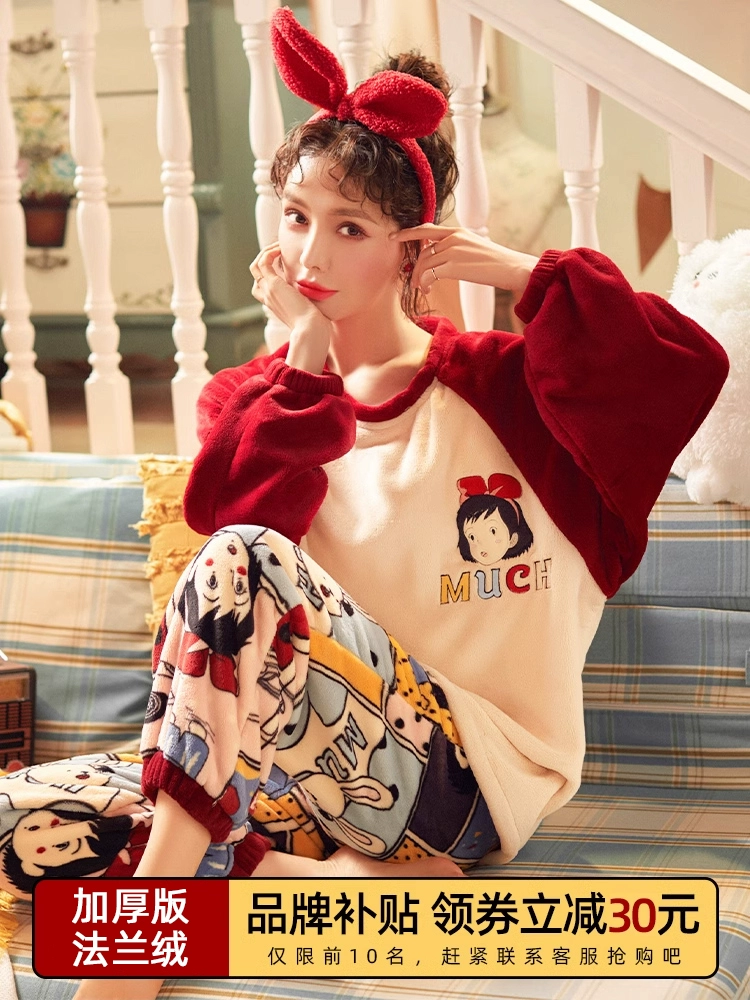 | nameOriginal | Coral velvet pajamas for women winter thickened plus velvet warm women's 2024 new flannel cute home wear set |