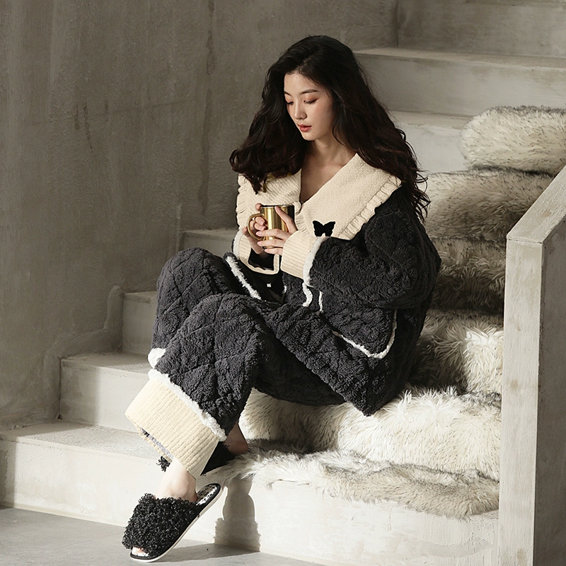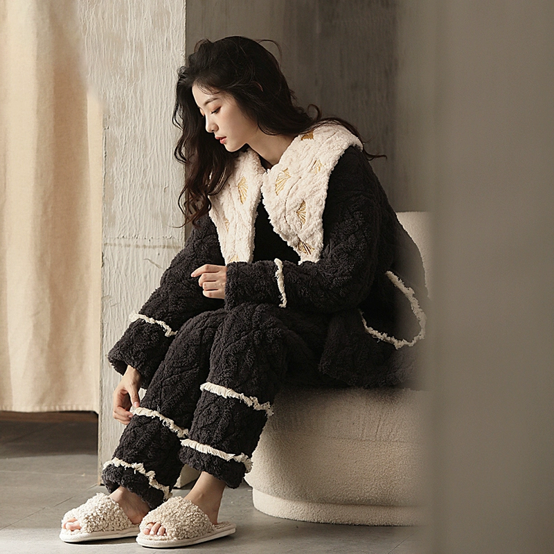 | nameOriginal | Coral velvet pajamas for women winter three-layer quilted super thick 2024 new thickened plus velvet large lapel home wear |