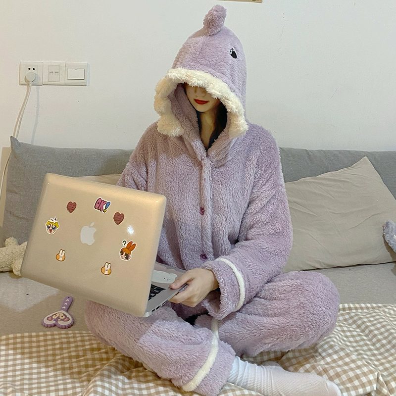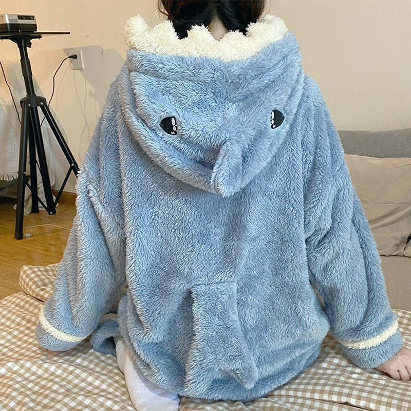 | nameOriginal | Coral velvet pajamas winter women's hooded shark long-sleeved thickened velvet flannel autumn and winter home wear set |