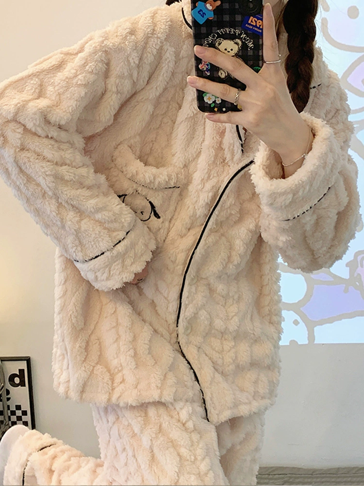 | nameOriginal | Coral velvet pajamas, winter women's jacquard cardigan, internet celebrity style, autumn and winter style, plus velvet and thickened flannel home clothes |
