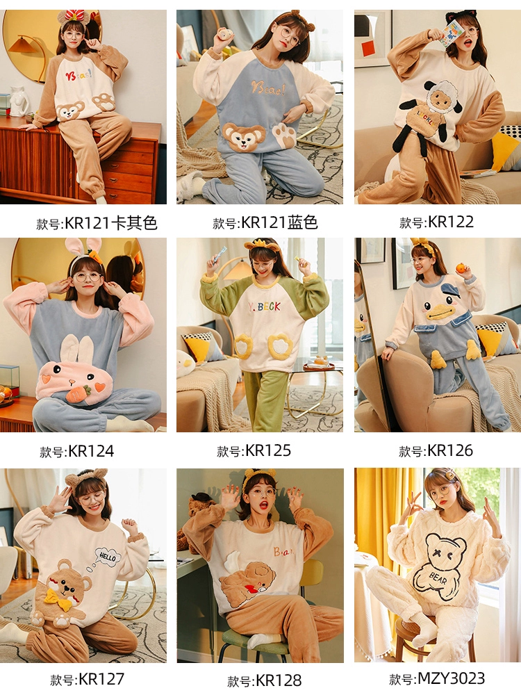 | nameOriginal | Coral velvet pajamas winter women's thickened plus velvet bear autumn and winter women's flannel home clothes suit winter |
