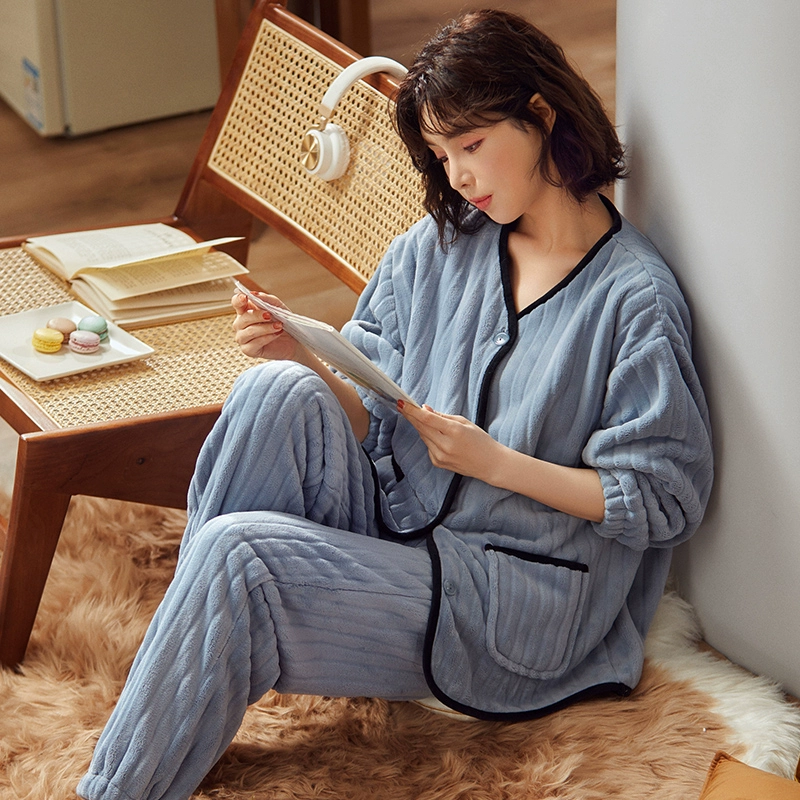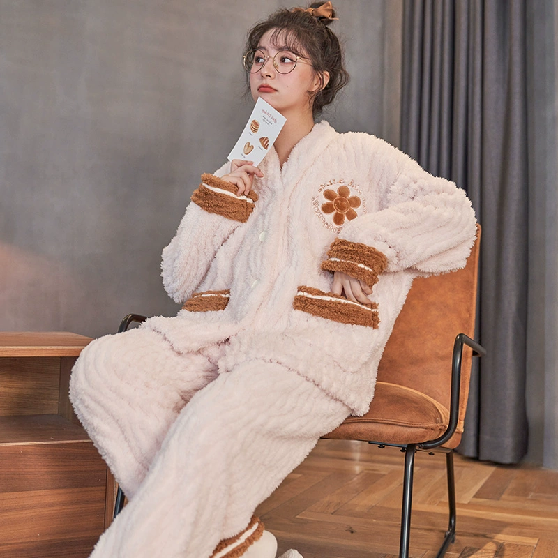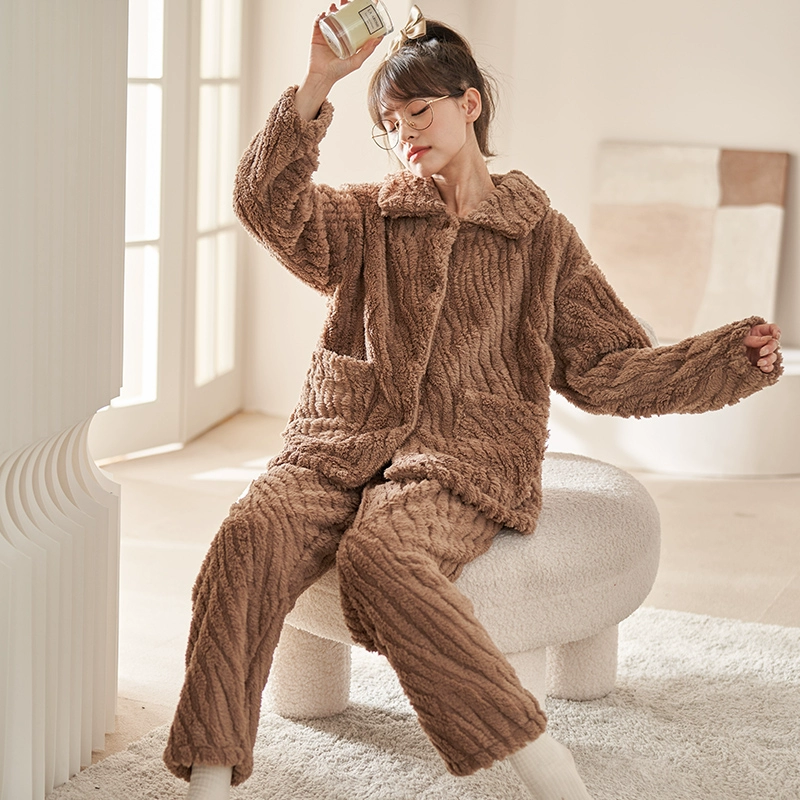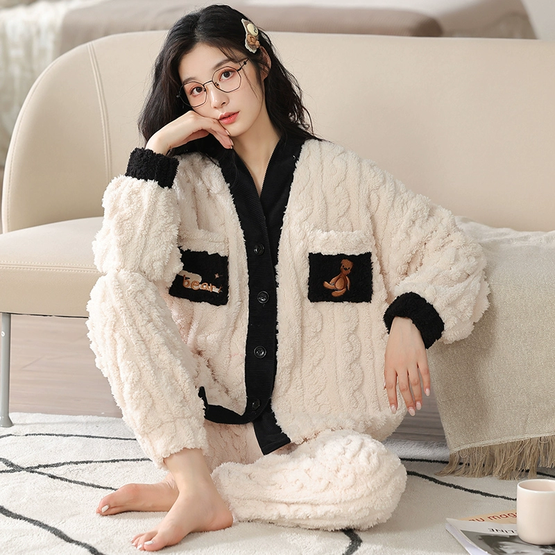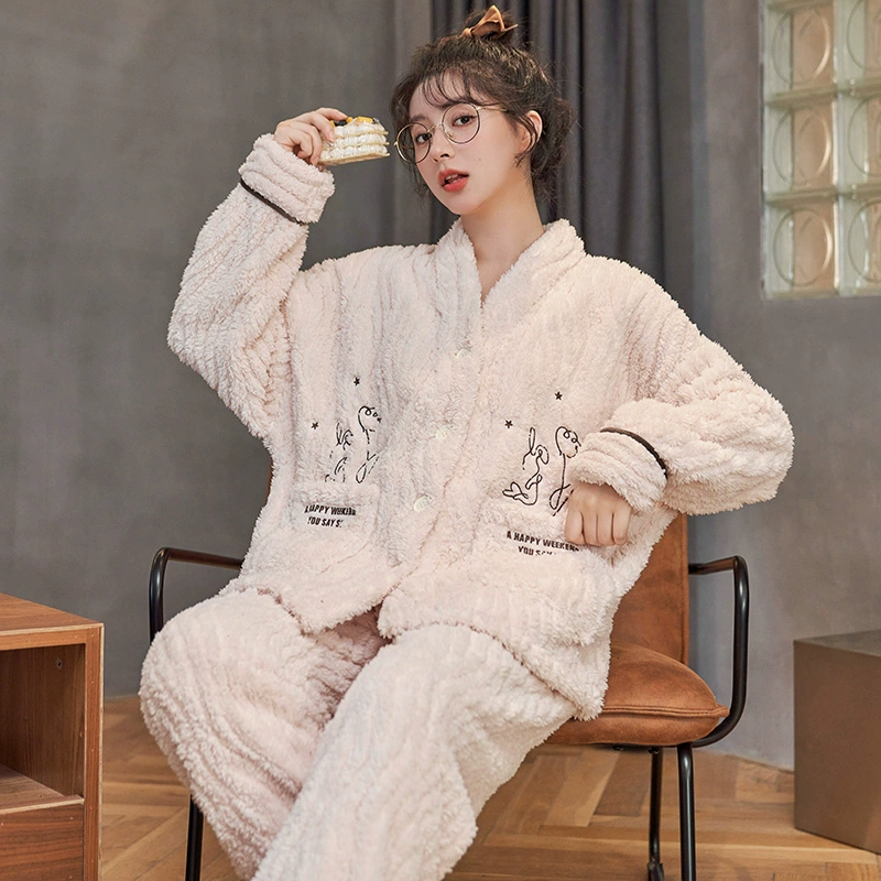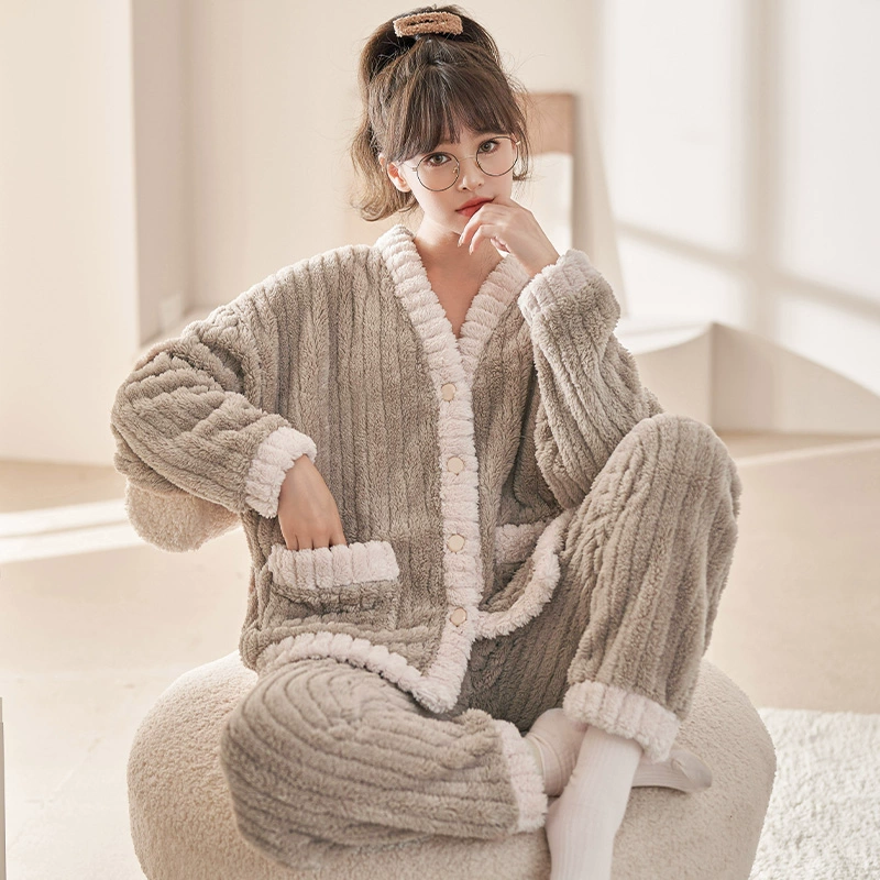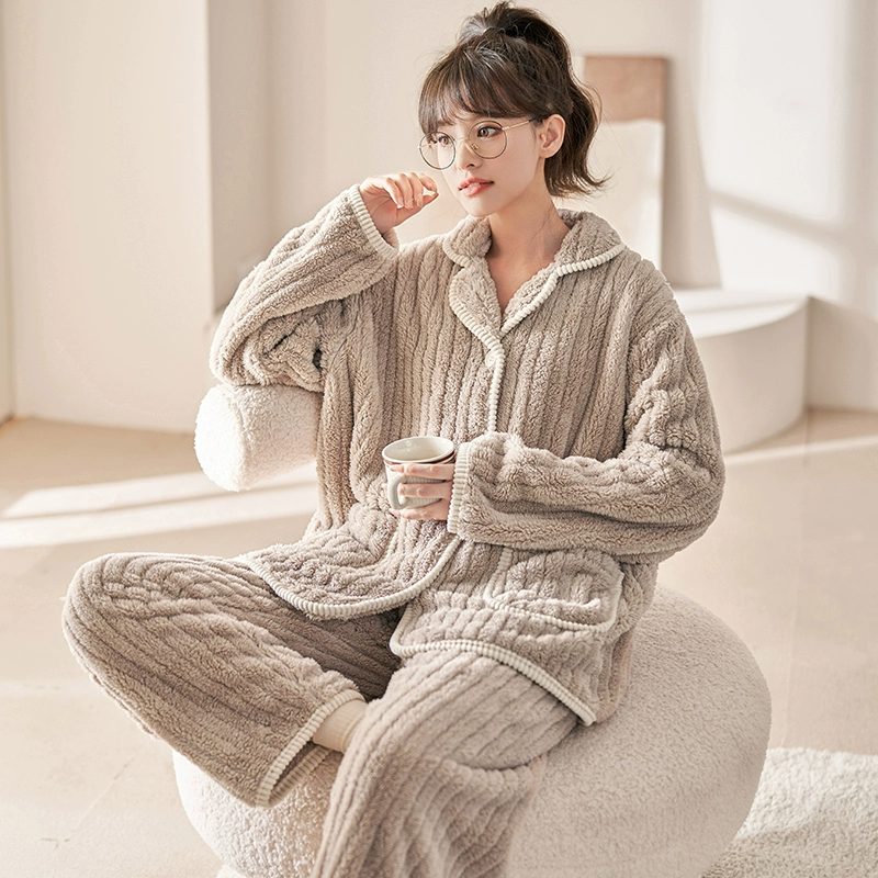 Coral velvet pajamas women’s Internet celebrity style winter plus velvet thickening 2023 new autumn and winter flannel cardigan home wear
