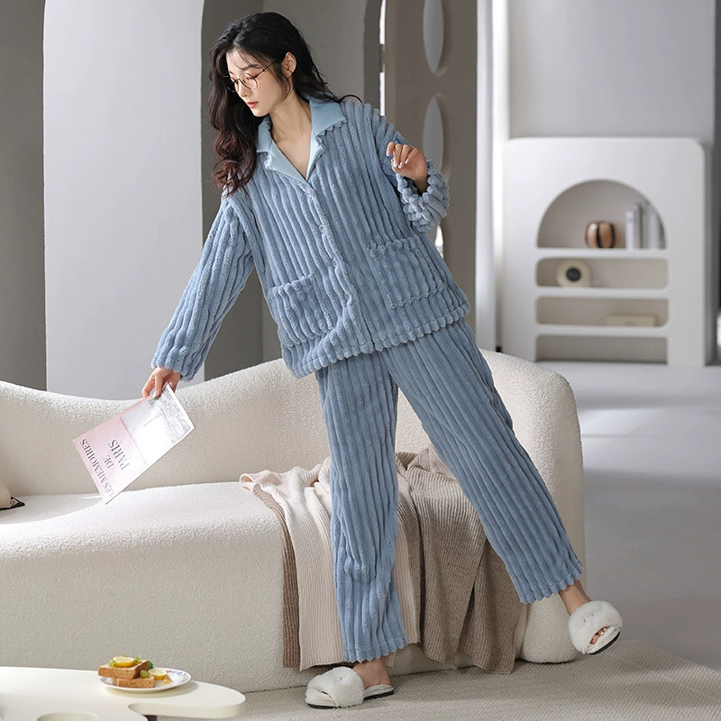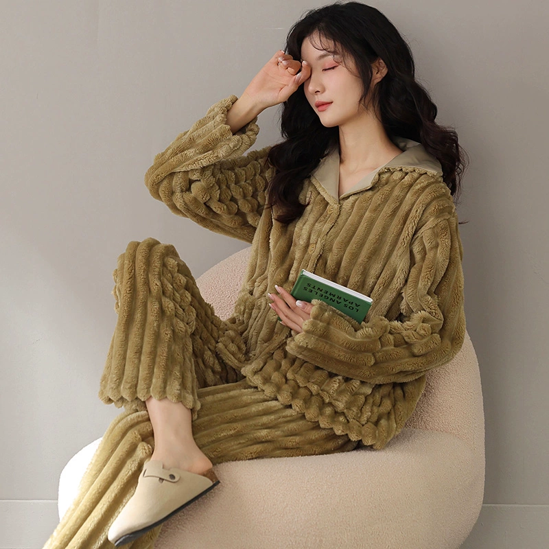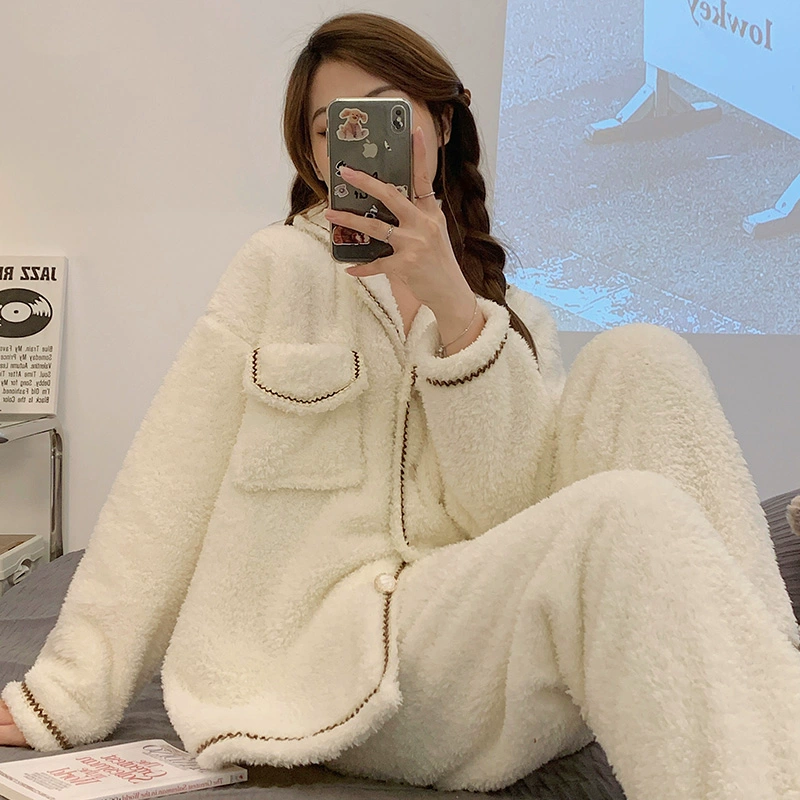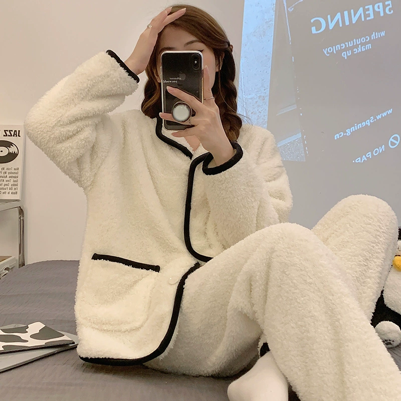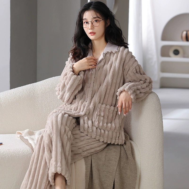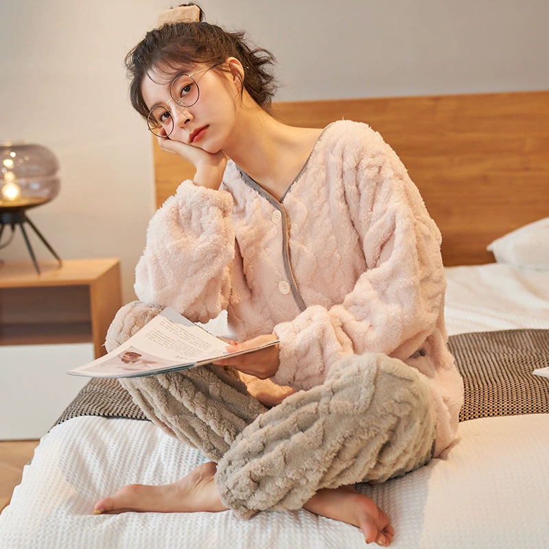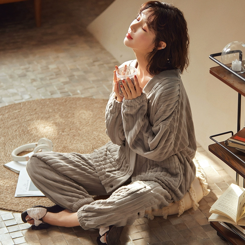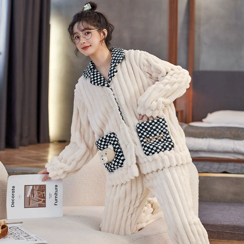 Coral velvet pajamas women’s Internet celebrity style winter plus velvet thickening 2023 new autumn and winter flannel cardigan home wear
