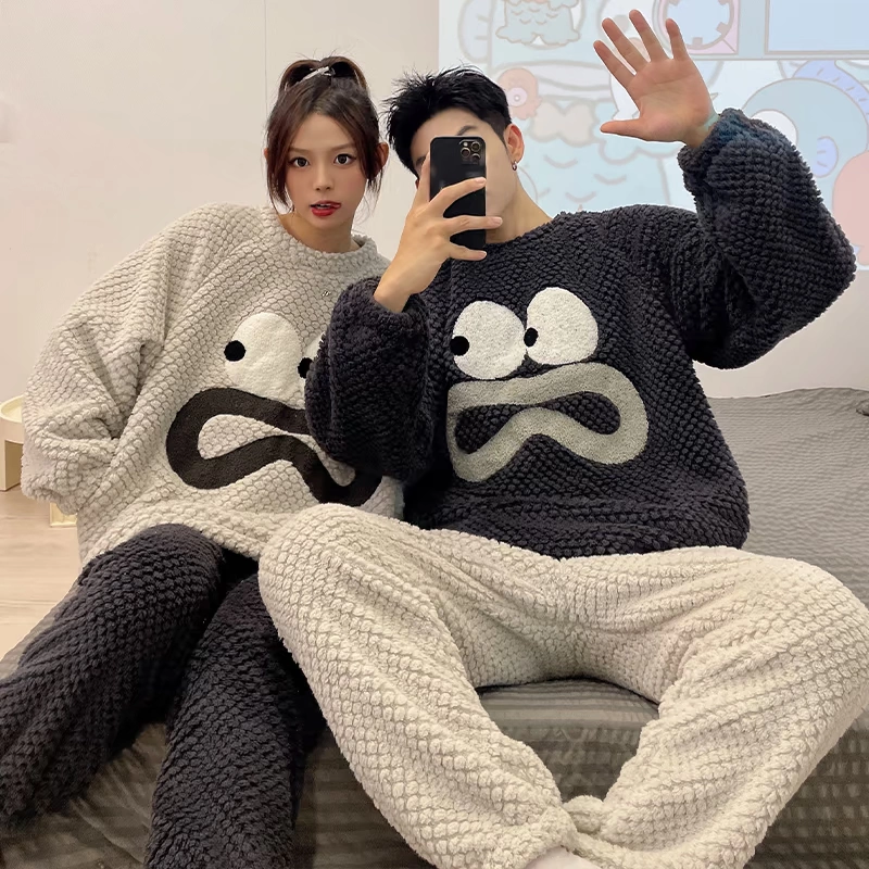 Coral velvet and velvet thickened pajamas women new autumn and winter couple set flanges simple casual male home service