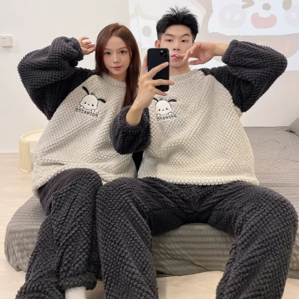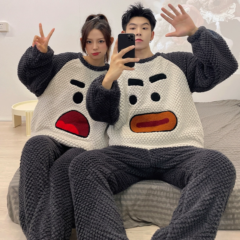 Coral velvet and velvet thickened pajamas women new autumn and winter couple set flanges simple casual male home service
