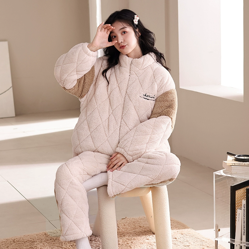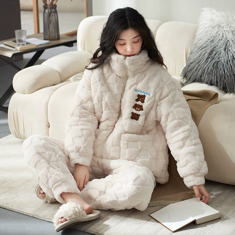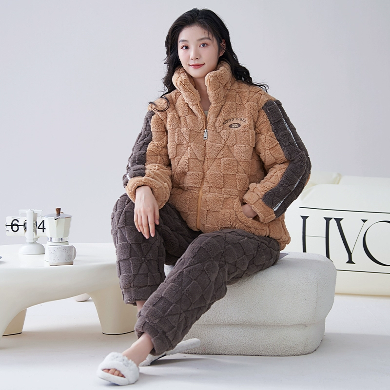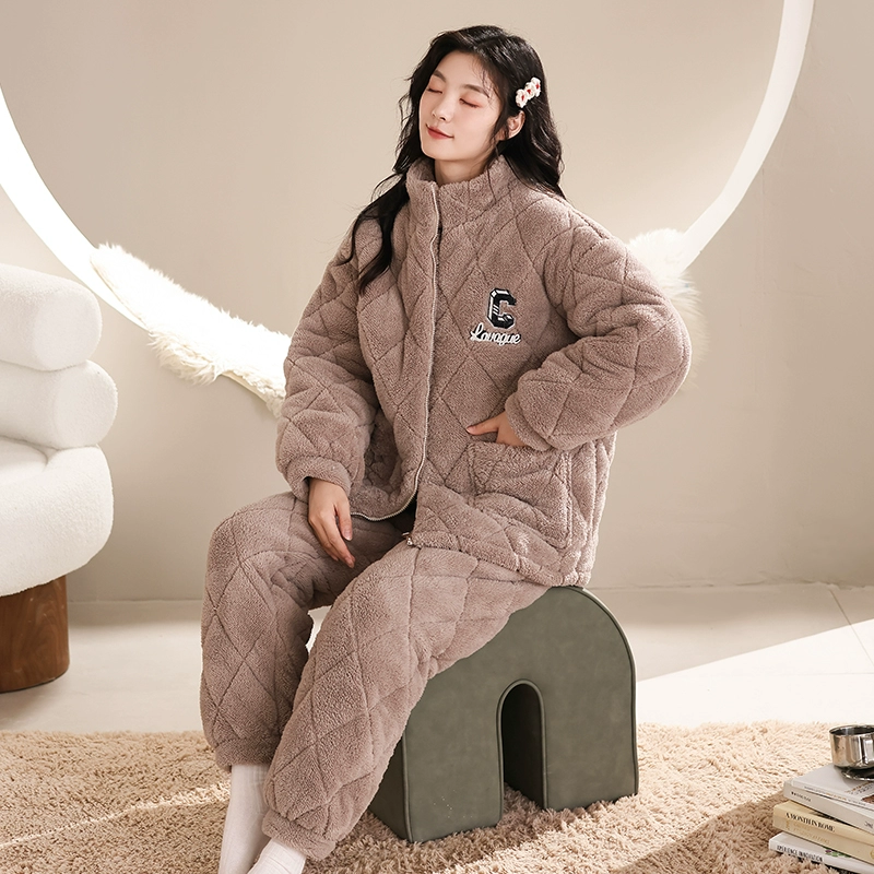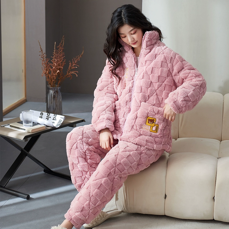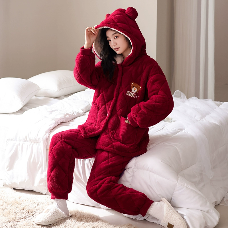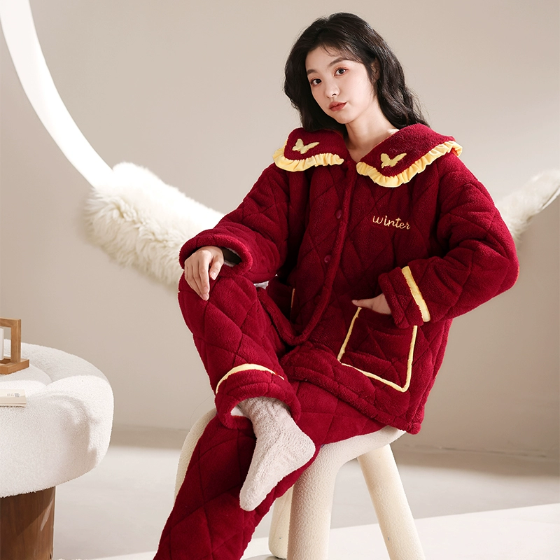 | nameOriginal | Coral velvet three-layer quilted pajamas for women autumn and winter plus velvet and thickening to keep warm red zodiac year home wear set |