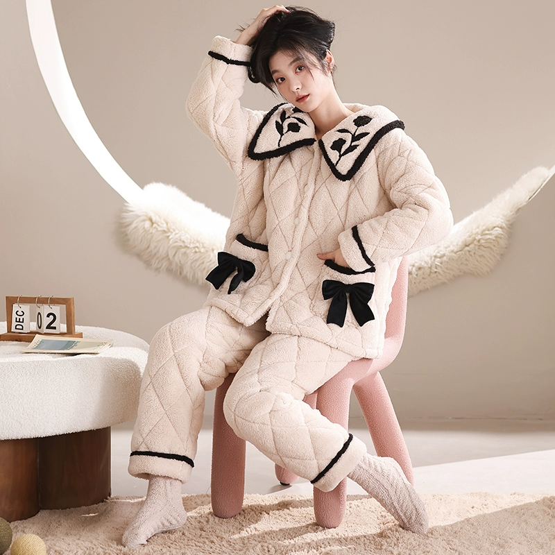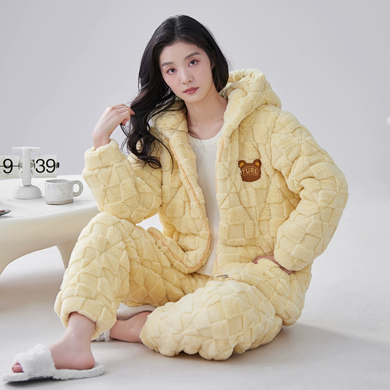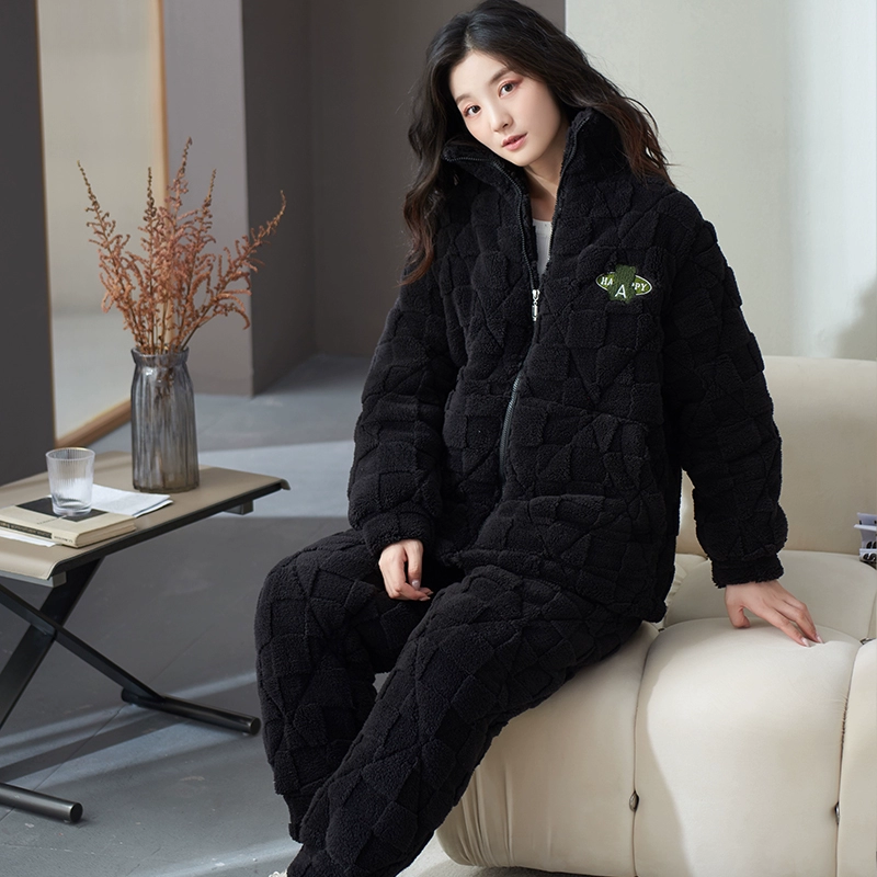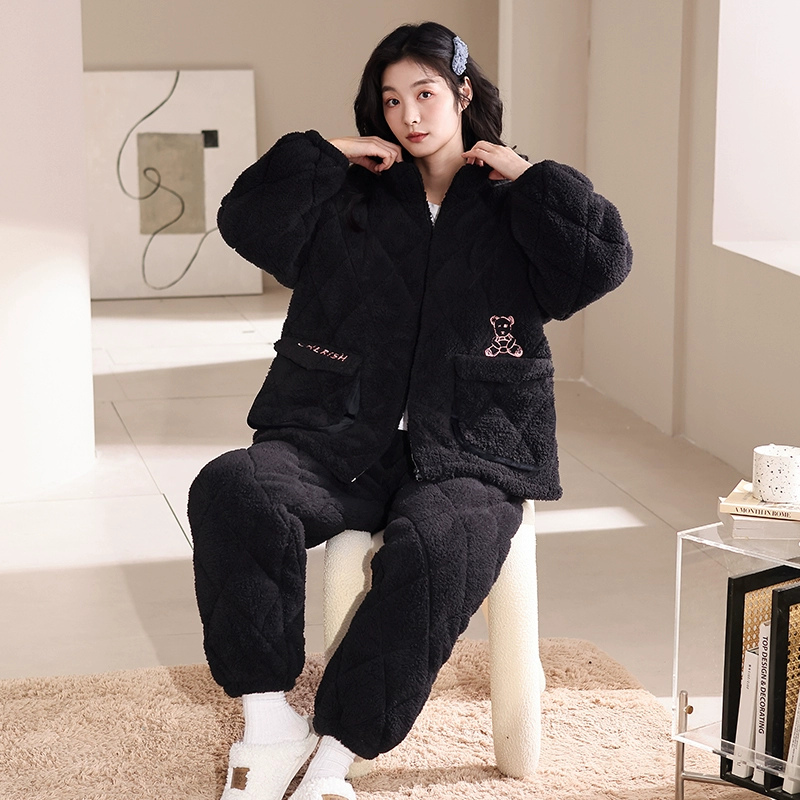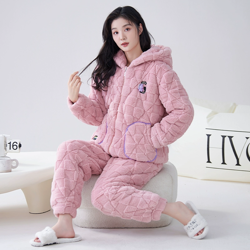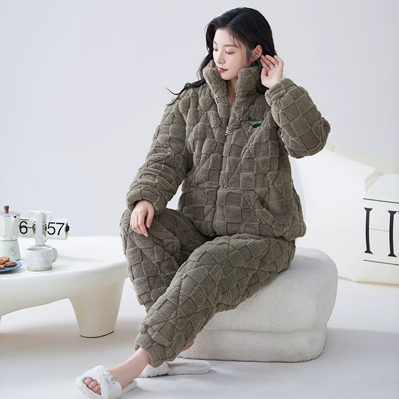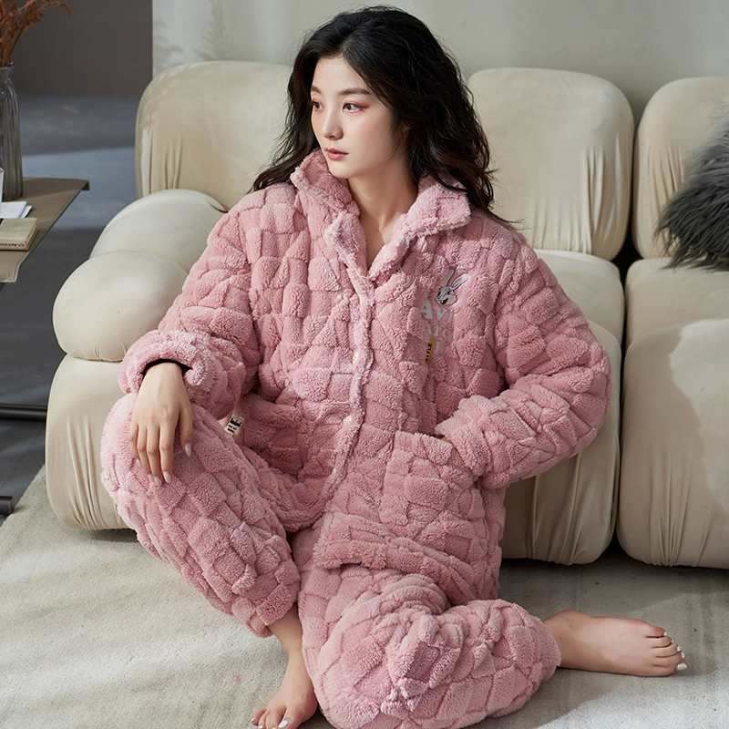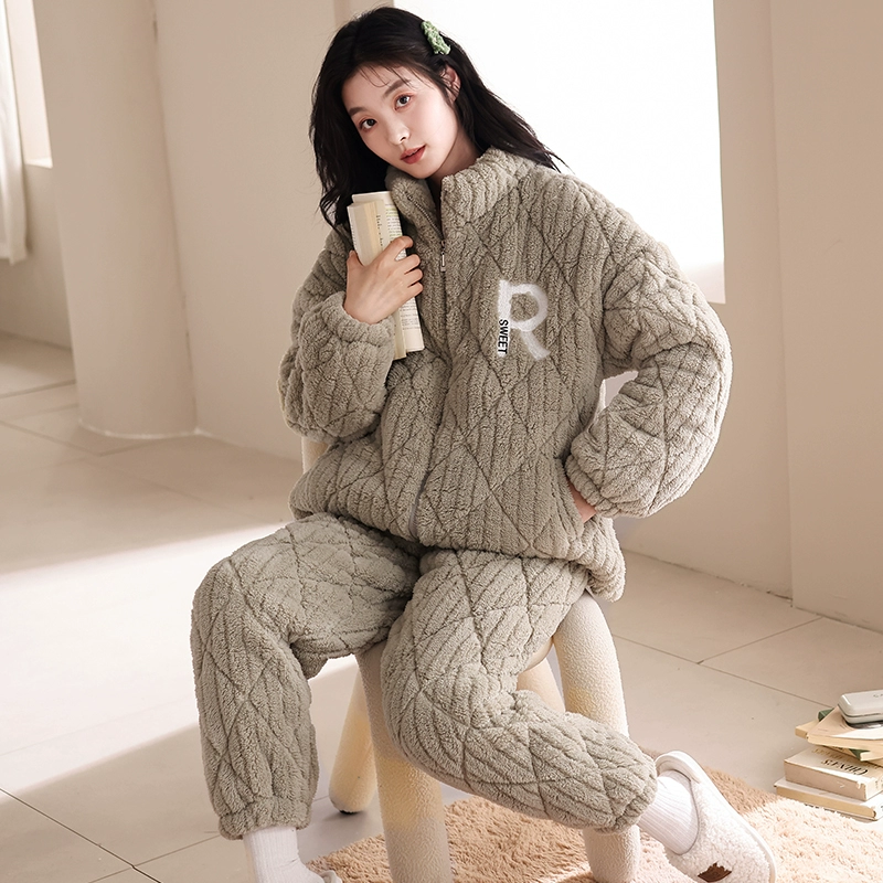 | nameOriginal | Coral velvet three-layer quilted pajamas for women autumn and winter plus velvet and thickening to keep warm red zodiac year home wear set |