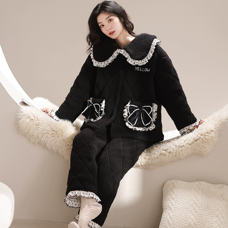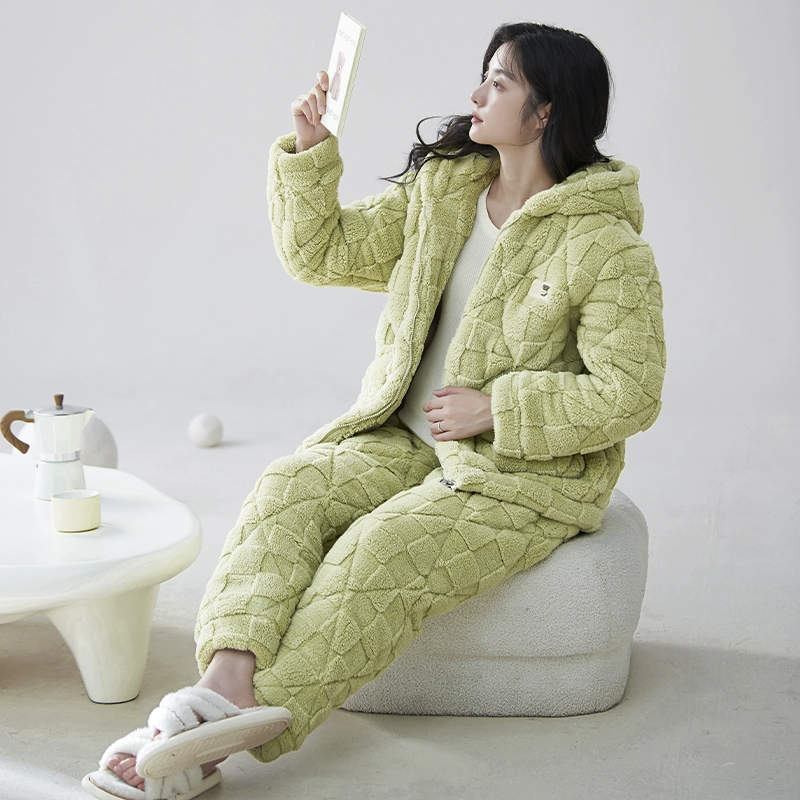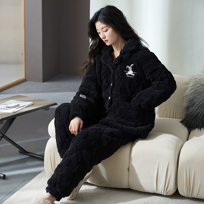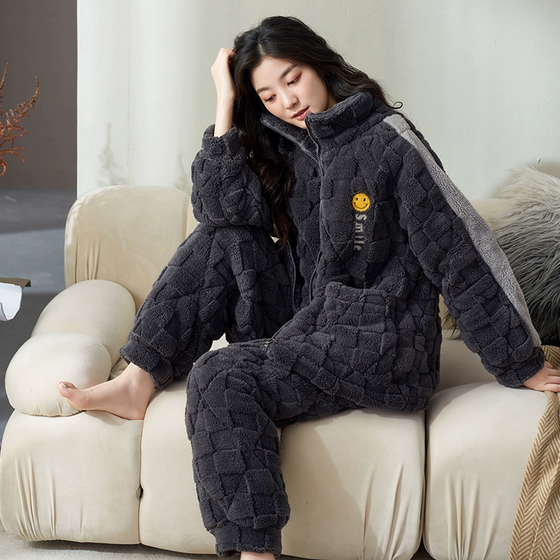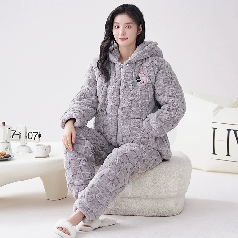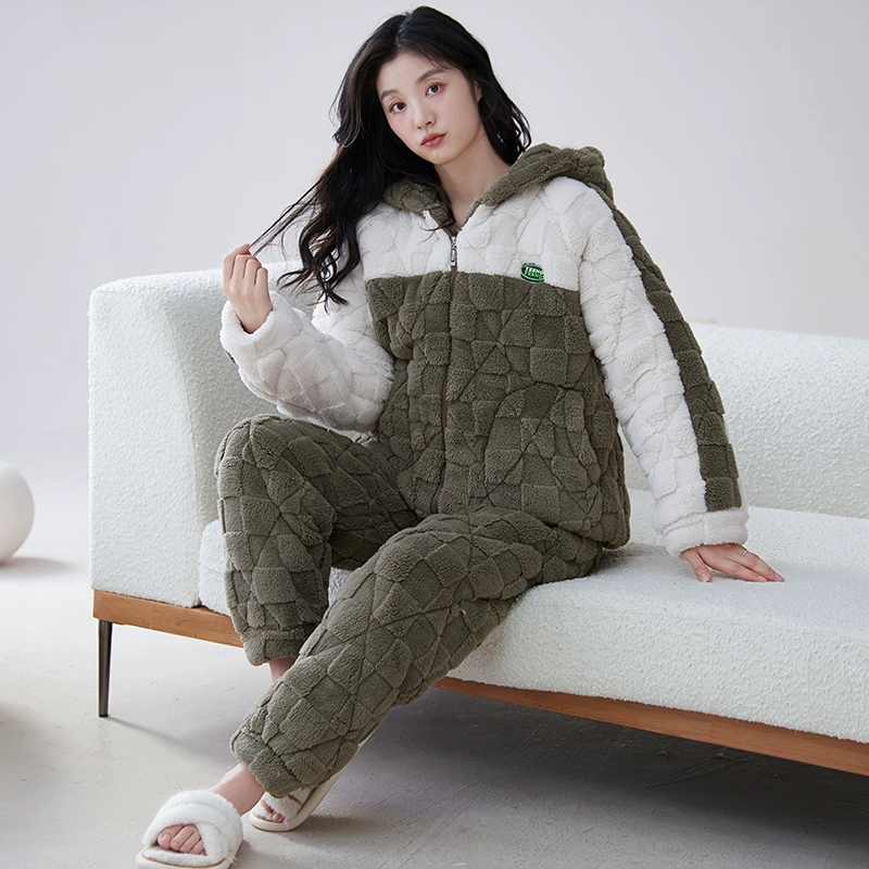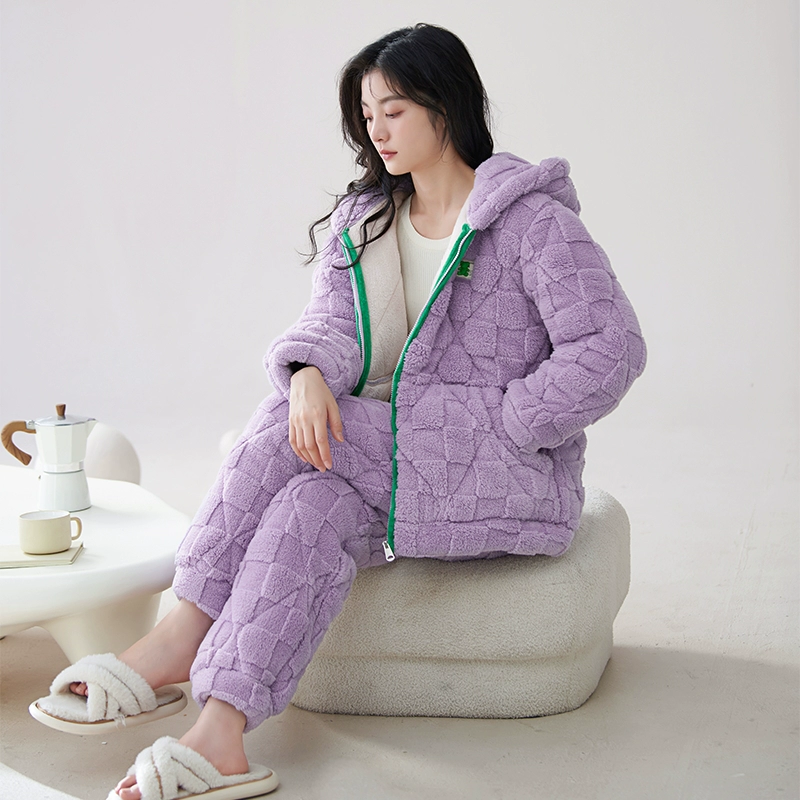 | nameOriginal | Coral velvet three-layer quilted pajamas for women autumn and winter plus velvet and thickening to keep warm red zodiac year home wear set |