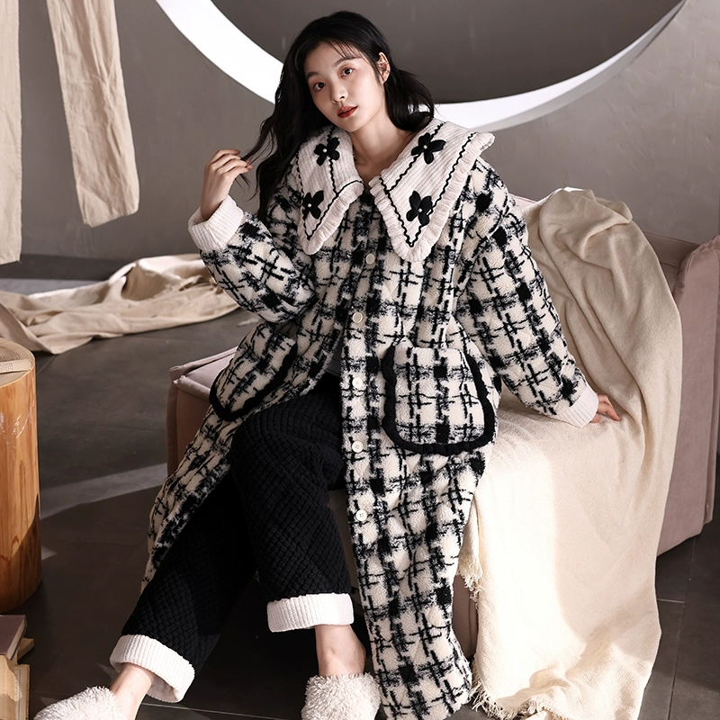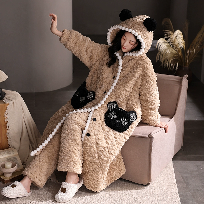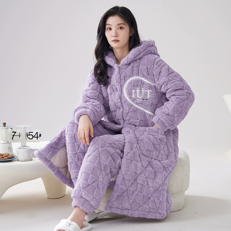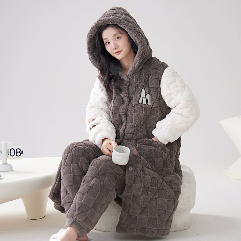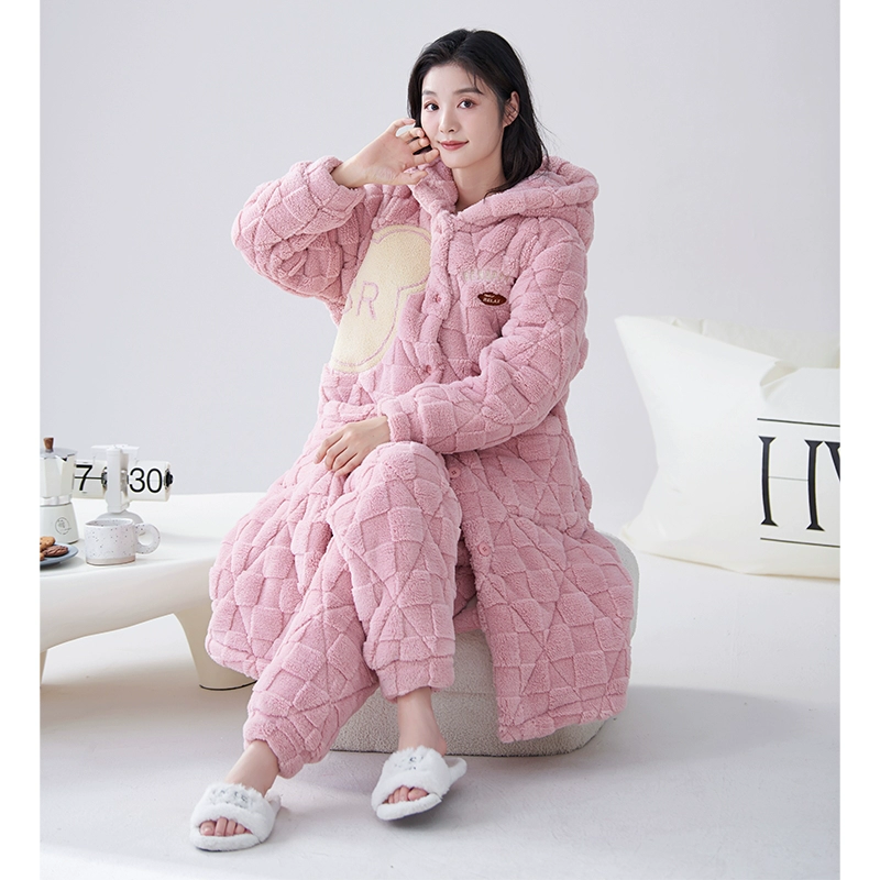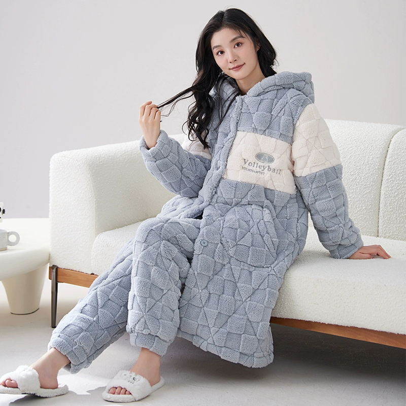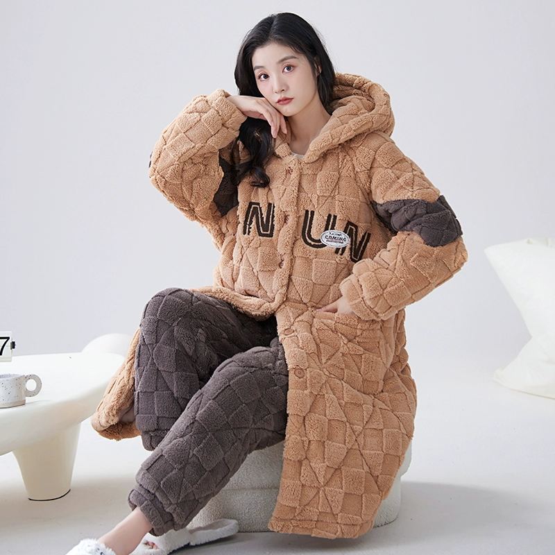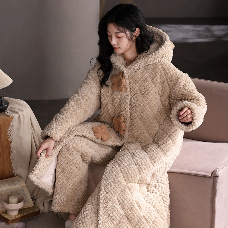 | nameOriginal | Coral velvet three-layer quilted pajamas for women winter plus velvet thickened warm autumn and winter hooded pajamas home wear set |